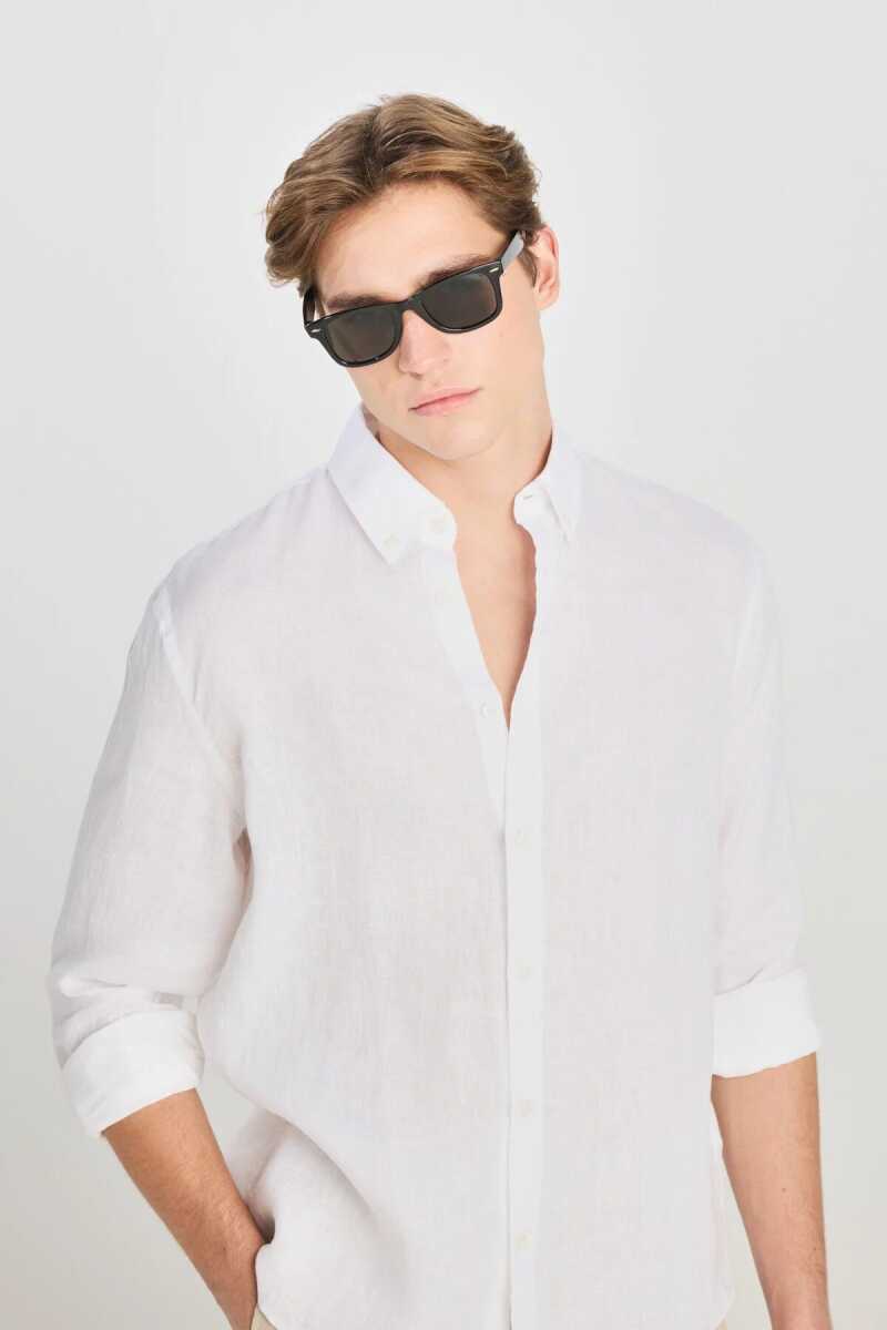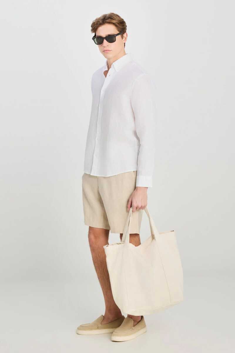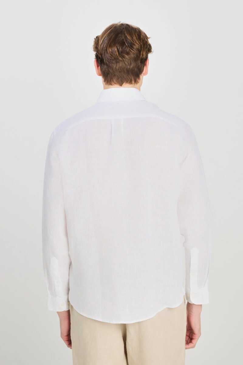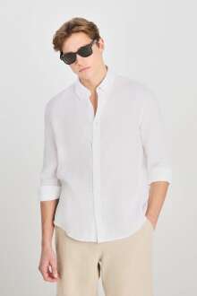 ee - %100 Keten Regular Fit Normal Kesim Beyaz Gömlek %100 KETEN