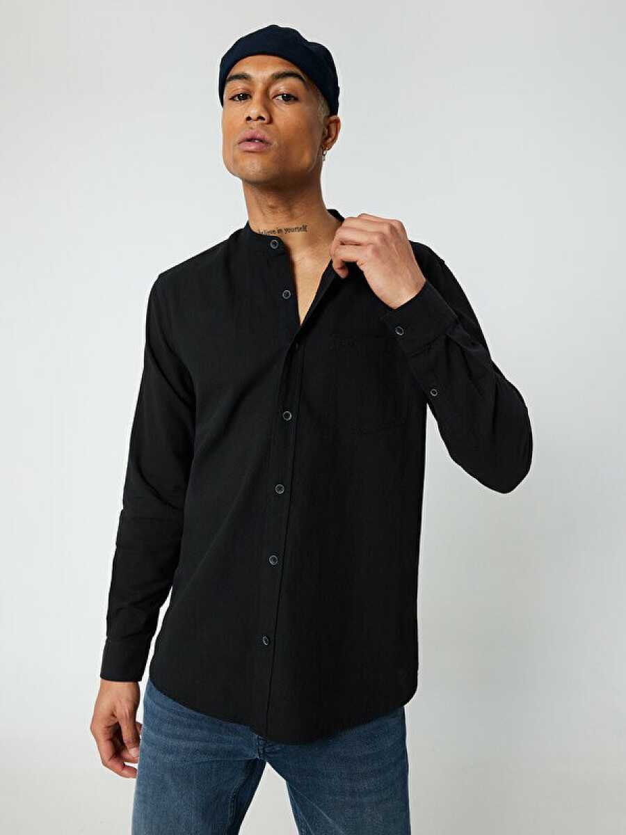 KUMAŞ ÖZELLİK : %100 PamukCinsiyet : ErkekFit : Regular FitKol Tipi : Uzun KolTema : EssentıalsÜRÜN TANIMIModern erkek tarzını konuştur!Uzun kollu yüksek yakalı bu gömlek; Regular Fit duruşuyla vücuduna kusursuz oturuyor %100 pamuk dokusuyla gün boyu nefes almanı sağlıyor. Dayanıklılığıyla her an yanındayken yumuşaklığıyla konforu zirveye taşıyor. İş görüşmesinden akşam yemeğine her anında şıklığını konuşturacağın bir tasarım.Koyu gri pantolonunla ofisteki tarzını konuştur hafta sonu ise koyu mavi kot pantolon ve deri botlarla şehre meydan oku.