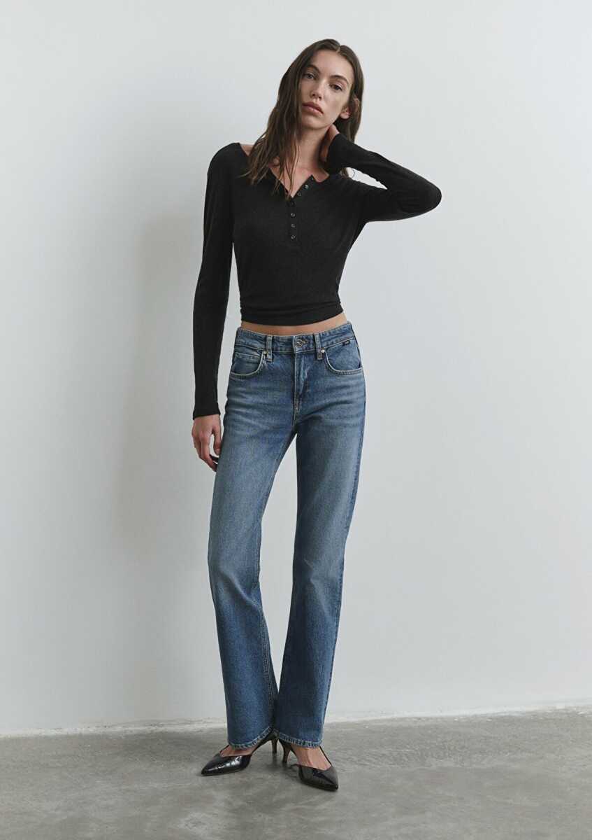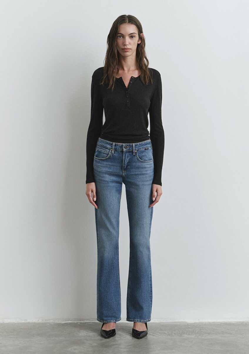 Şimdi KeşfetMavi Alina Iconic Puslu Indigo Mavisi Flare Bootcut Normal Bel İspanyol Paça Kadın Jean Pantolon 1012577-90538