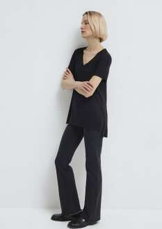 Mavi nin Kadın Koleksiyonundan V Yaka Siyah Basic TişörtYeni SezonNormal Kesim%97 Viskoz %3 ElastanManken Ölçüleri: Boy: 177 cm Bel: 59 cm Göğüs: 72 cm Kalça: 88 Manken Üzerindeki Ürün Bedeni Jeanler İçin Bel: 25 Boy: 29 Diğer Ürünler: SSiyahV-Yaka