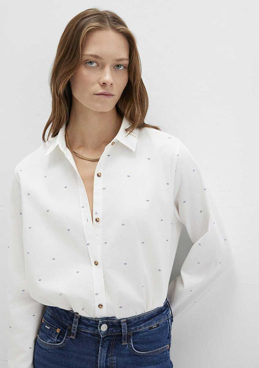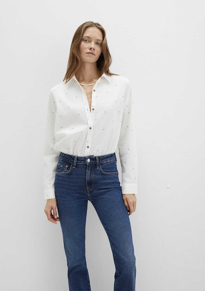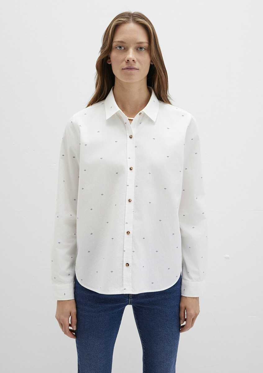 Mavi Baskılı Beyaz Loose Fit Kadın Gömlek 1211286-91353