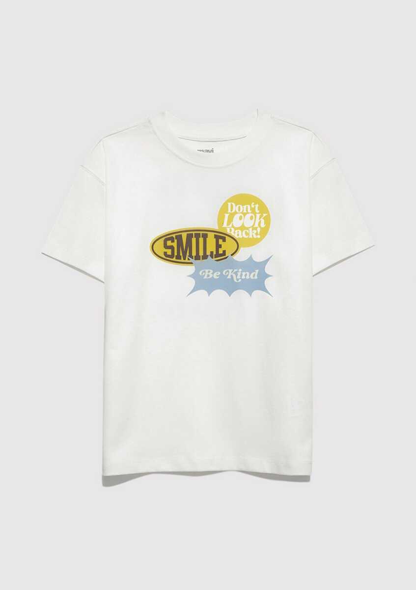 Mavi Baskılı Ekru Loose Fit Çocuk Tişört 6610399-70057