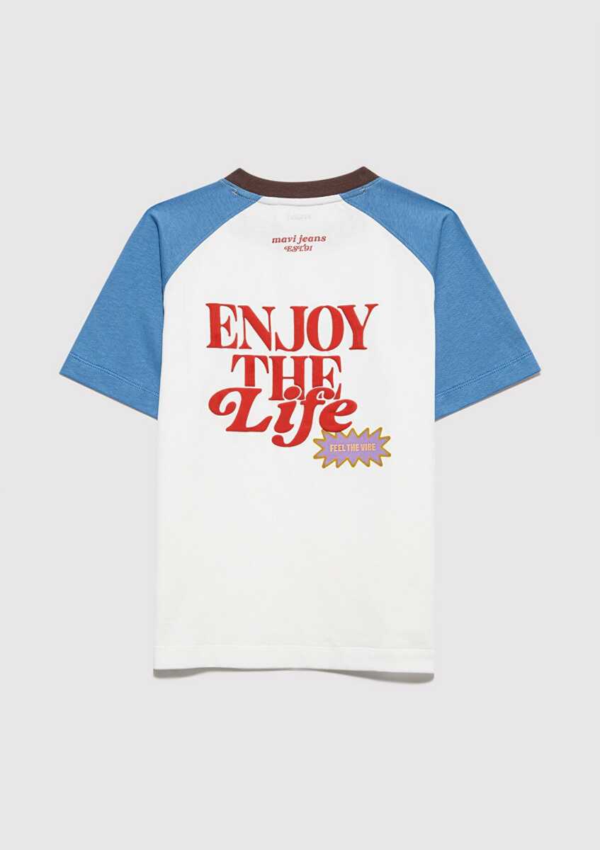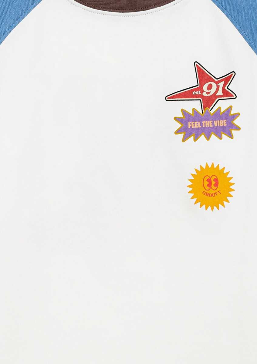 Mavi Baskılı Ekru Loose Fit Çocuk Tişört 6610410-70057