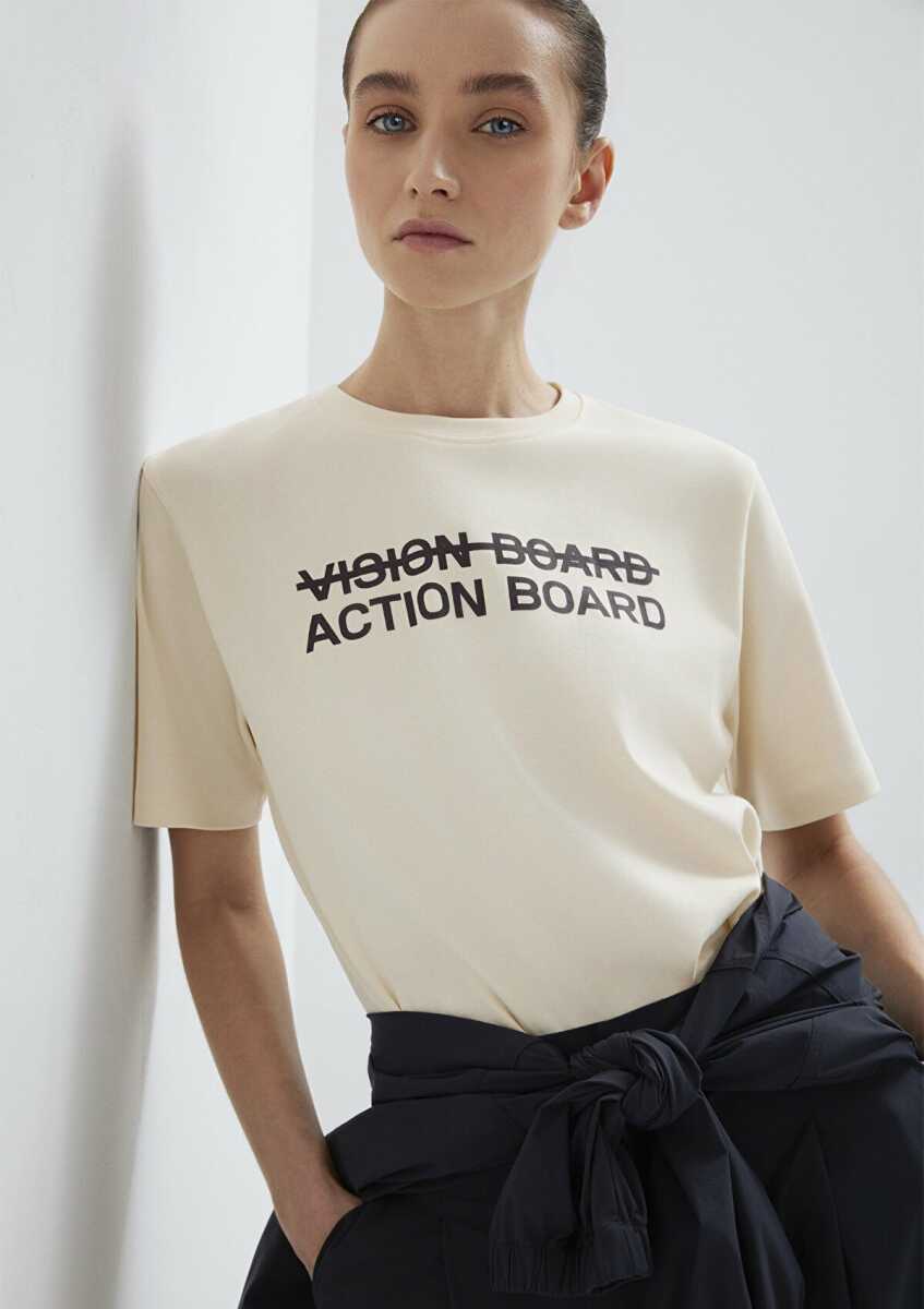 Mavi Baskılı Ekru Regular Fit Kadın Tişört 1613842-70005