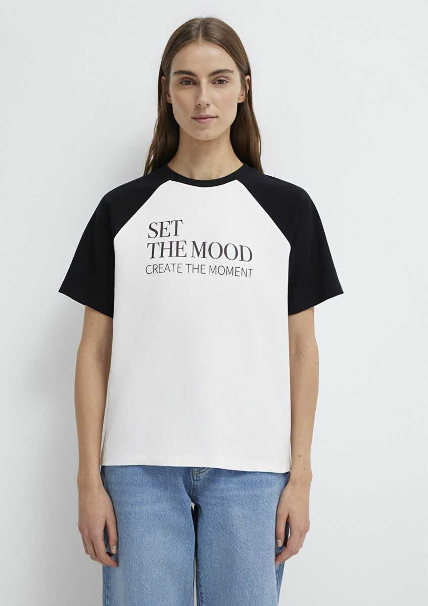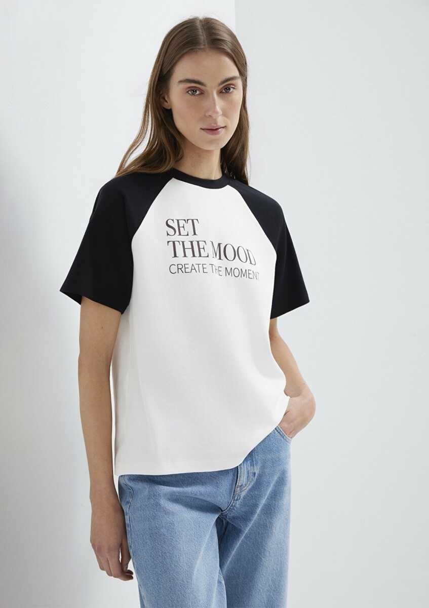 Mavi Baskılı Ekru Regular Fit Kadın Tişört1613844-70057