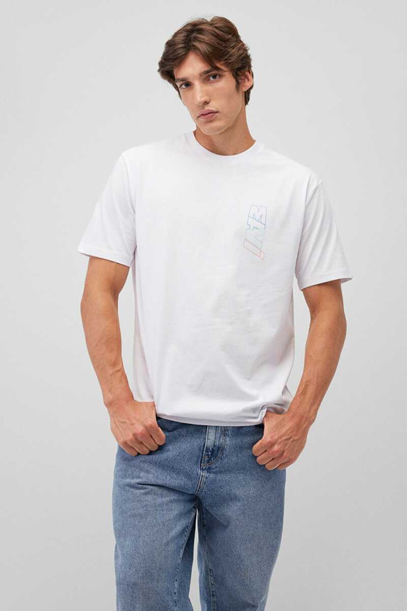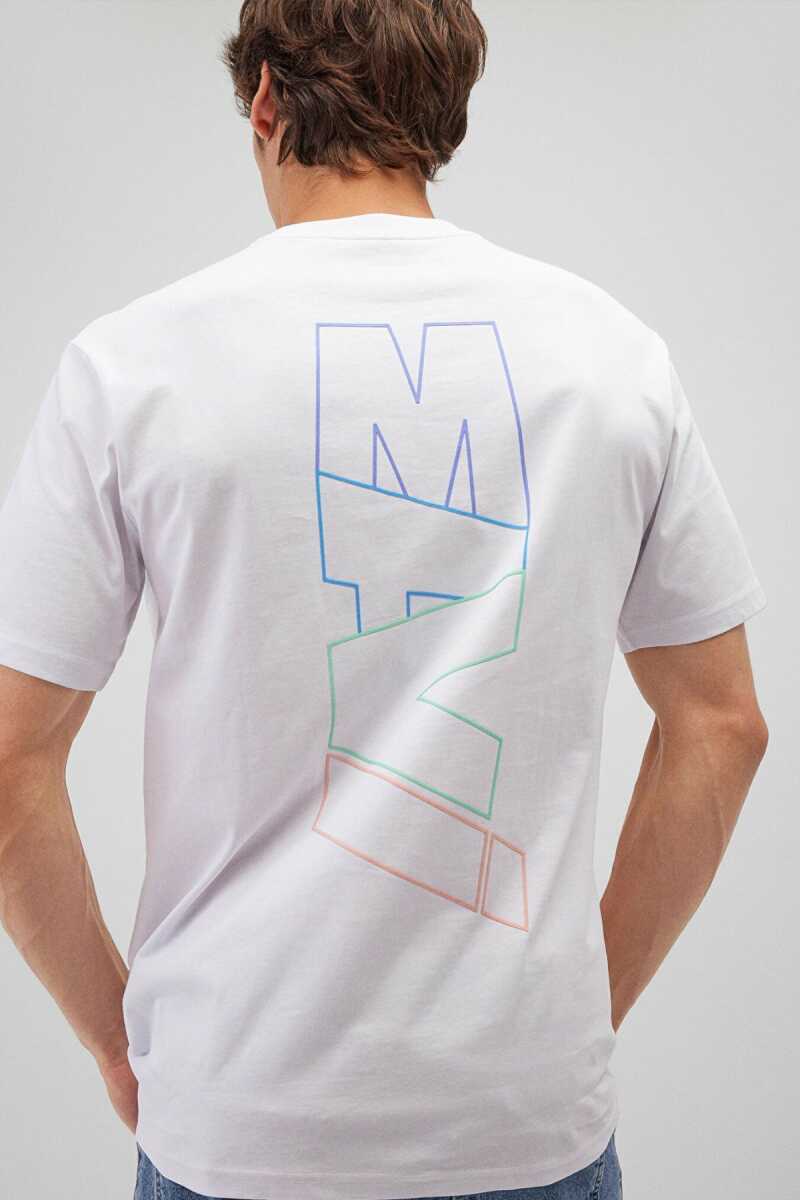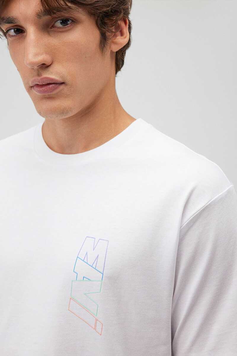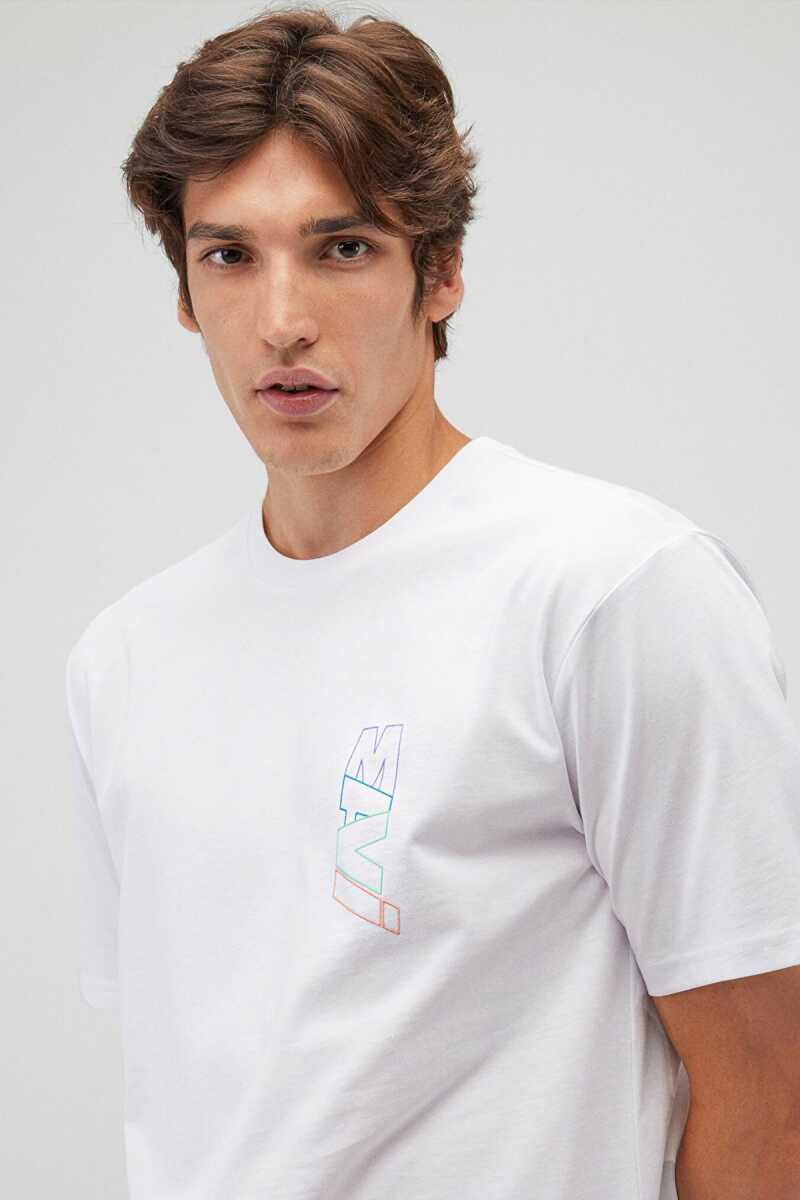 Mavi Basklılı Beyaz Erkek Tişört 0612350-620