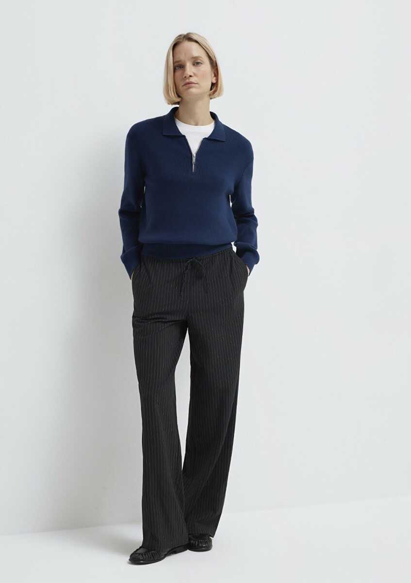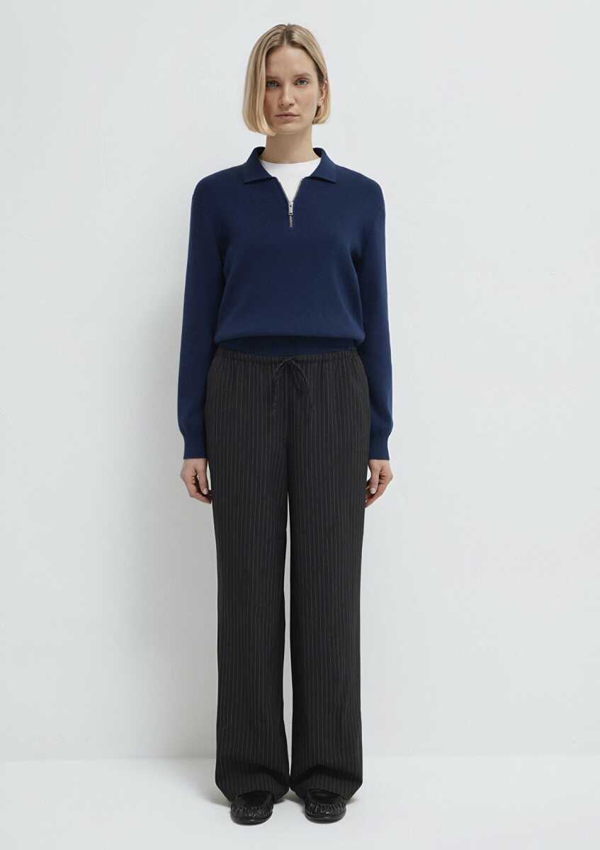 Şimdi KeşfetMavi Beli Bağcıklı Çizgili Antrasit Kadın Pantolon 1011153-91492