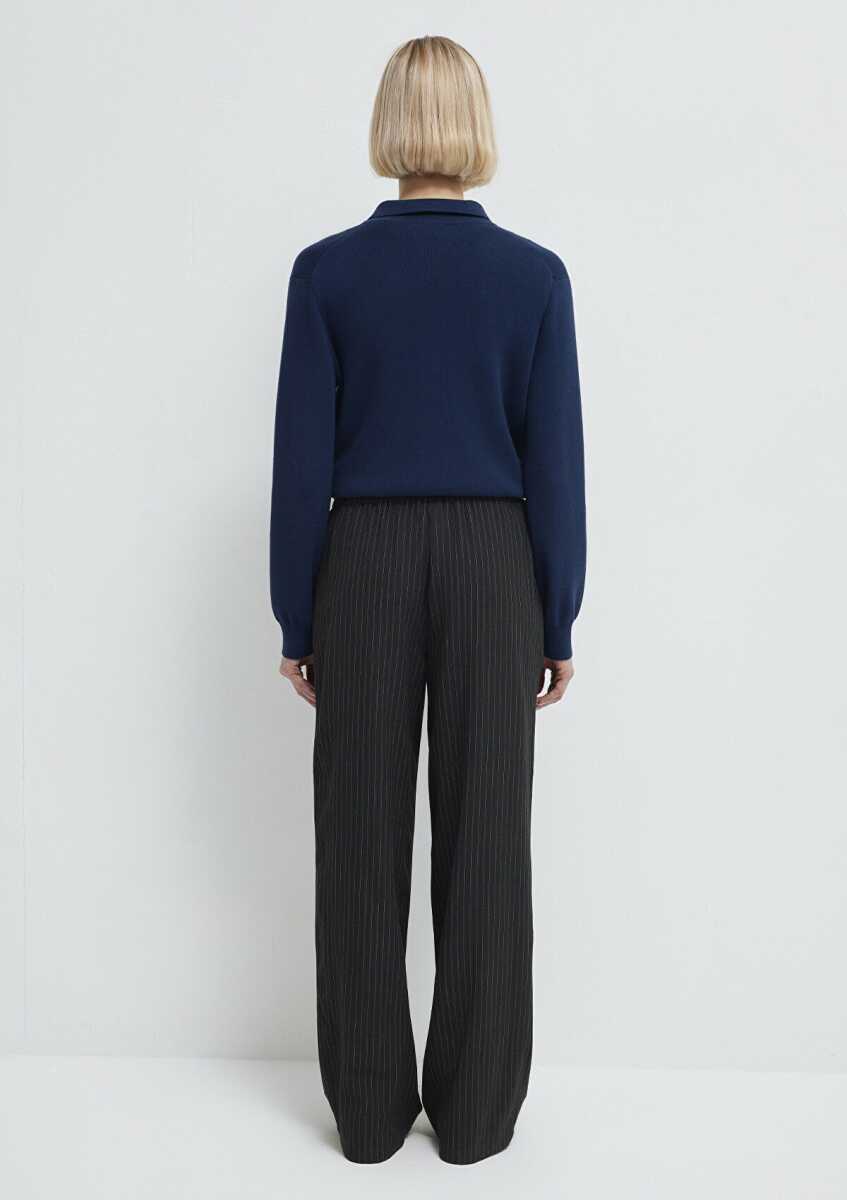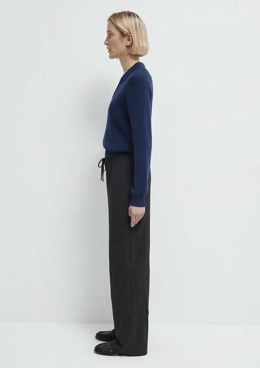 Mavi Beli Bağcıklı Çizgili Antrasit Kadın Pantolon 1011153-91492