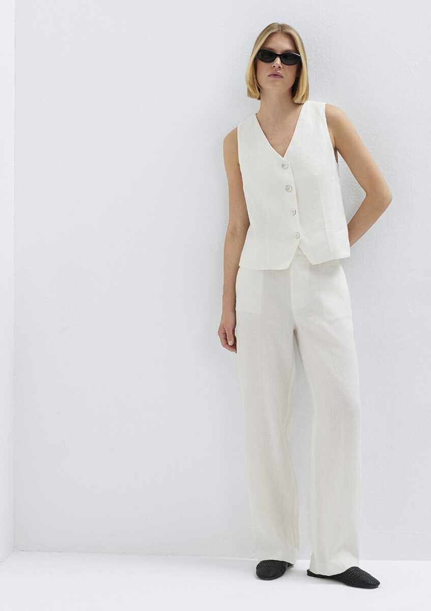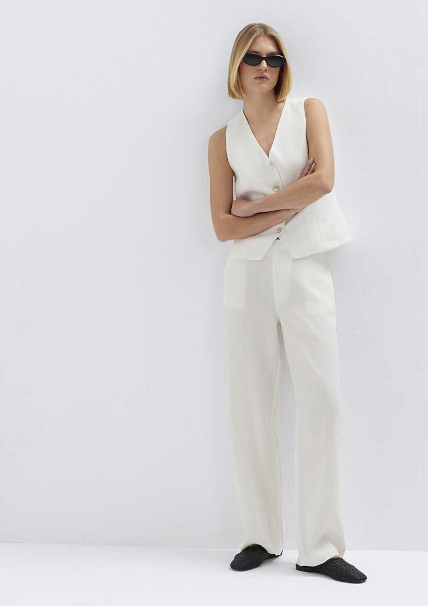 Şimdi KeşfetMavi Beyaz Geniş Paça Keten Kadın Pantolon 1011186-70057