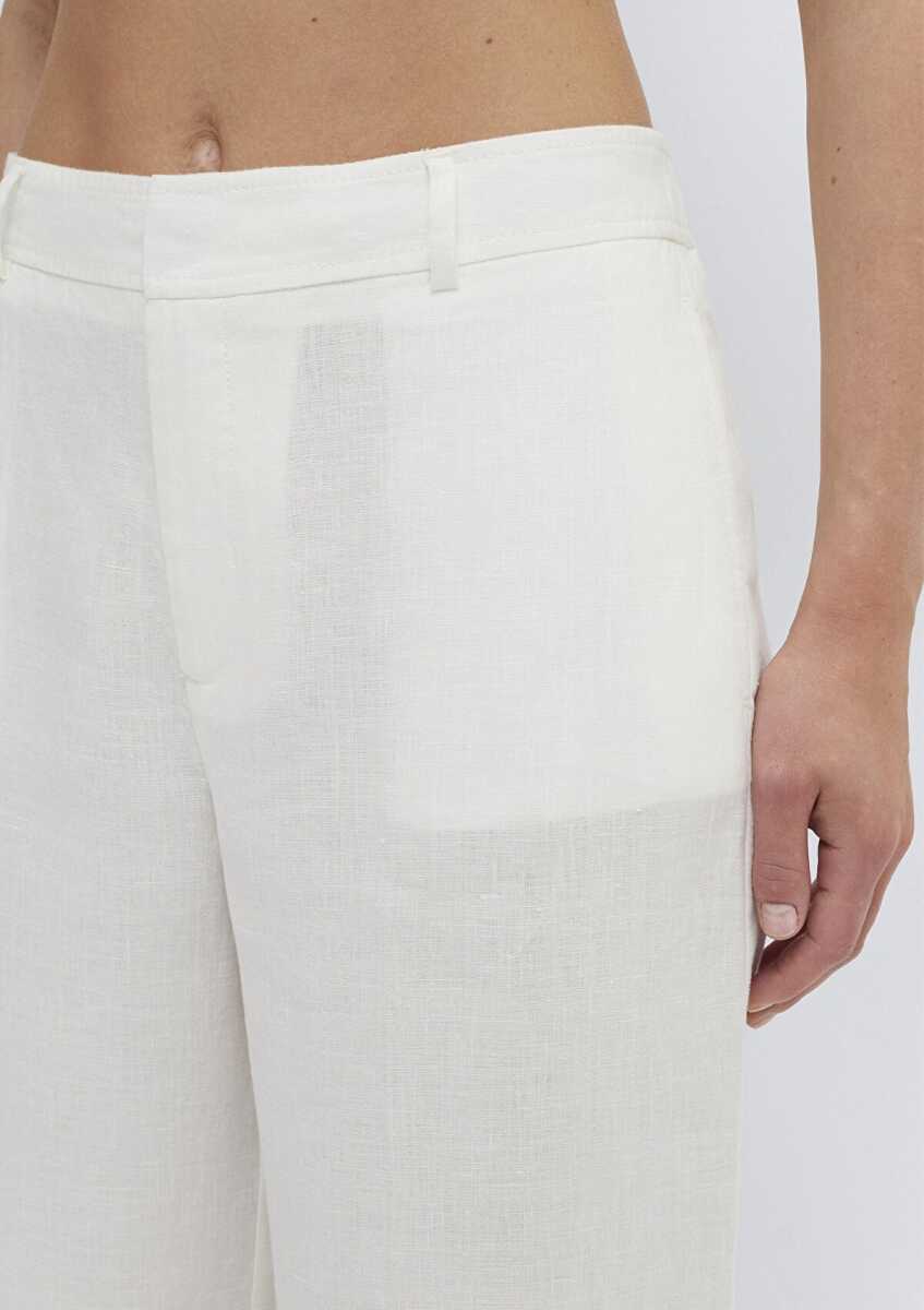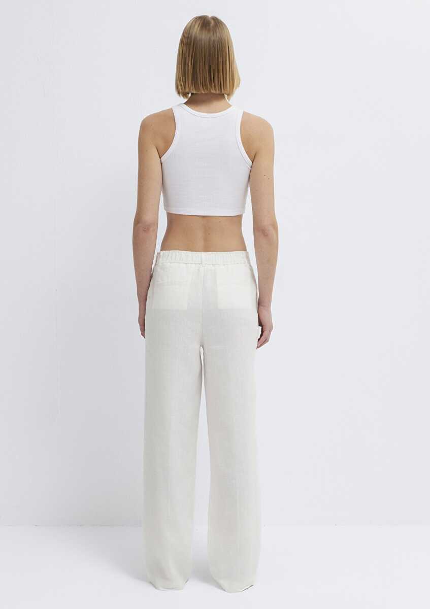 Mavi Beyaz Geniş Paça Keten Kadın Pantolon 1011186-70057