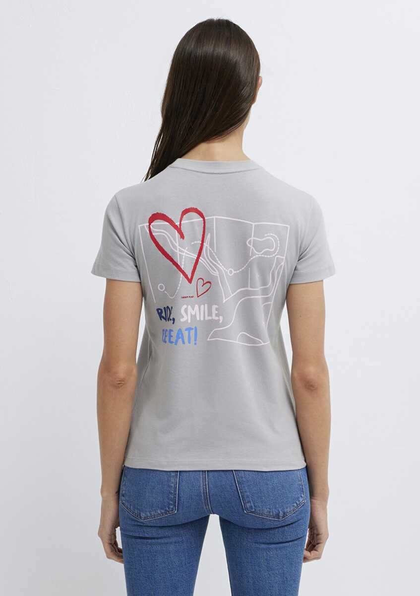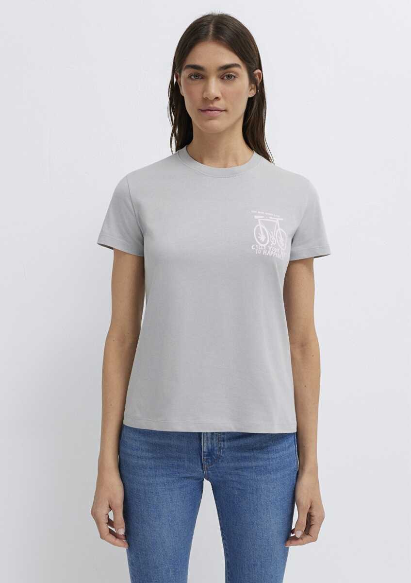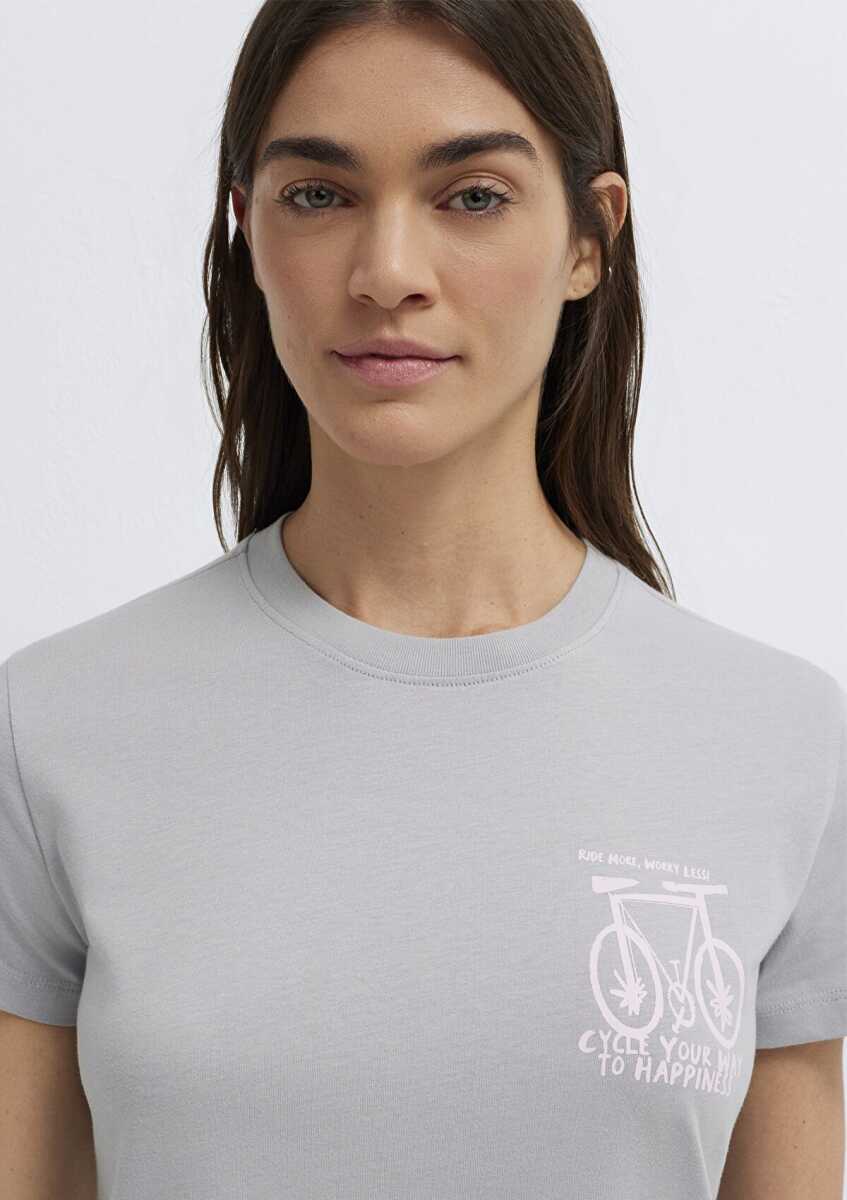 Mavi Bisiklet Baskılı Gri Kadın Tişört 1613860-70075