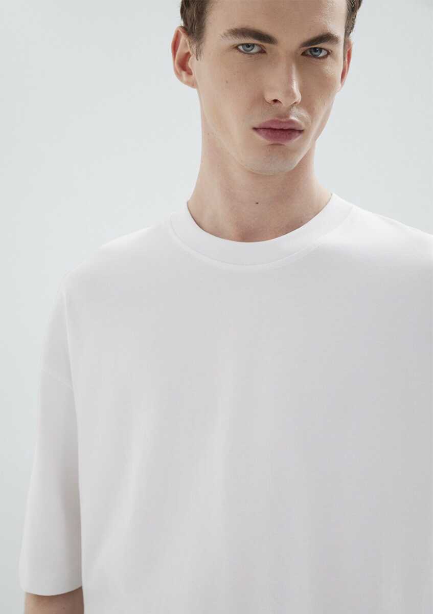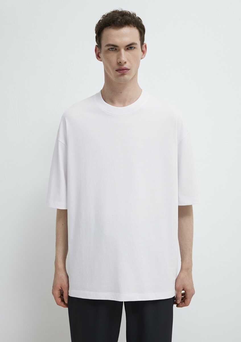 Mavi Bisiklet Yaka Beyaz Basic Oversize Erkek Tişört 0613113-620