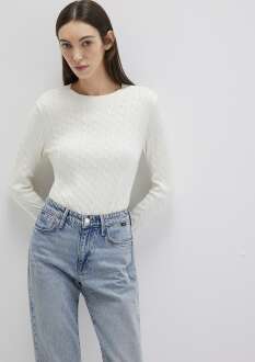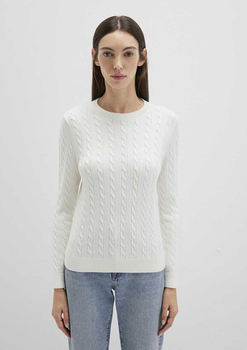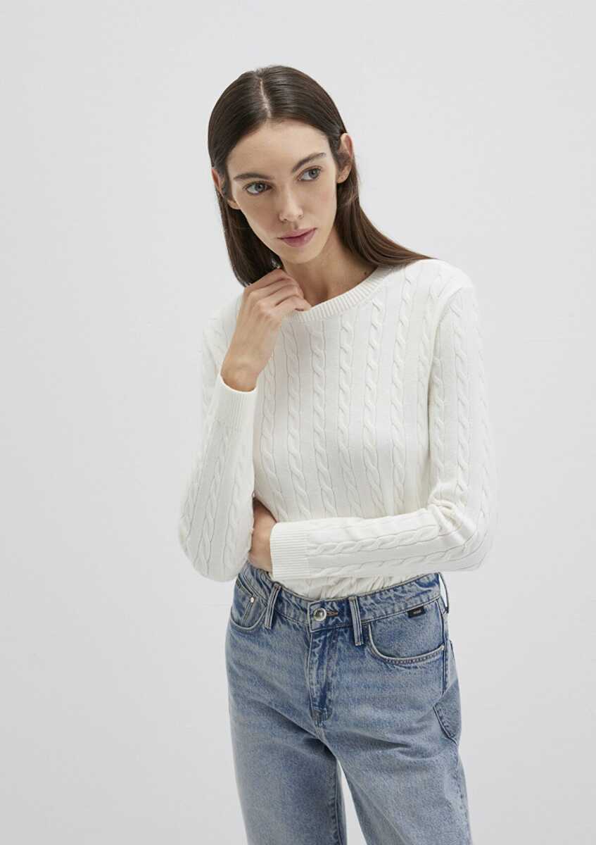 Mavi Bisiklet Yaka Kırık Beyaz Kadın Kazak 1710341-70057
