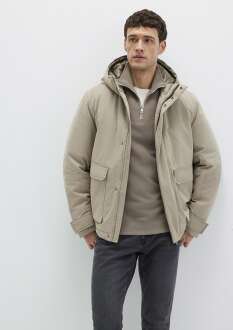Mavi Cep Detaylı Kapüşonlu Bej Erkek Mont 0110657-70355