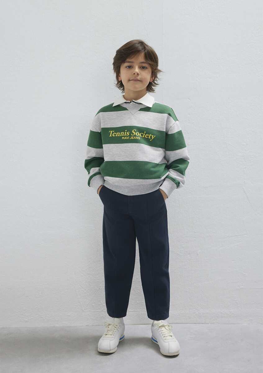 Şimdi KeşfetMavi Çizgili Baskılı Yeşil Loose Fit Çocuk Sweatshirt 6S10170-71697