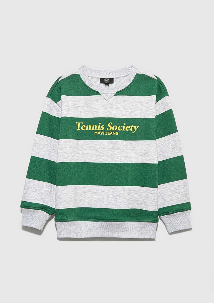 Mavi Çizgili Baskılı Yeşil Loose Fit Çocuk Sweatshirt 6S10170-71697