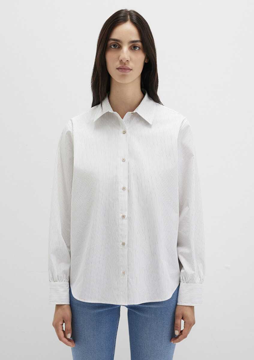 Mavi Çizgili Beyaz Loose Fit Kadın Gömlek 1211292-83980