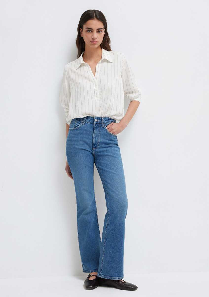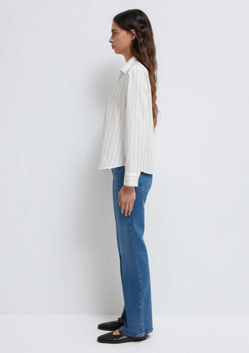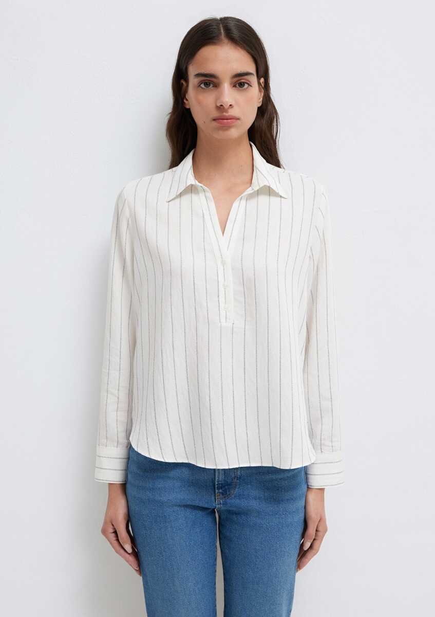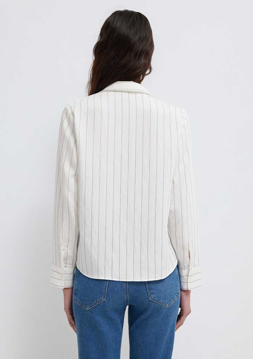 Mavi Çizgili Beyaz Regular Fit Kadın Gömlek1211427-83485