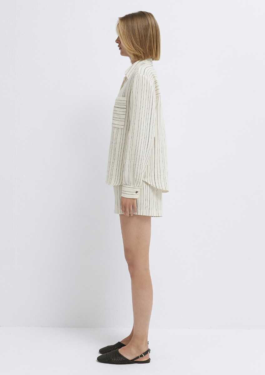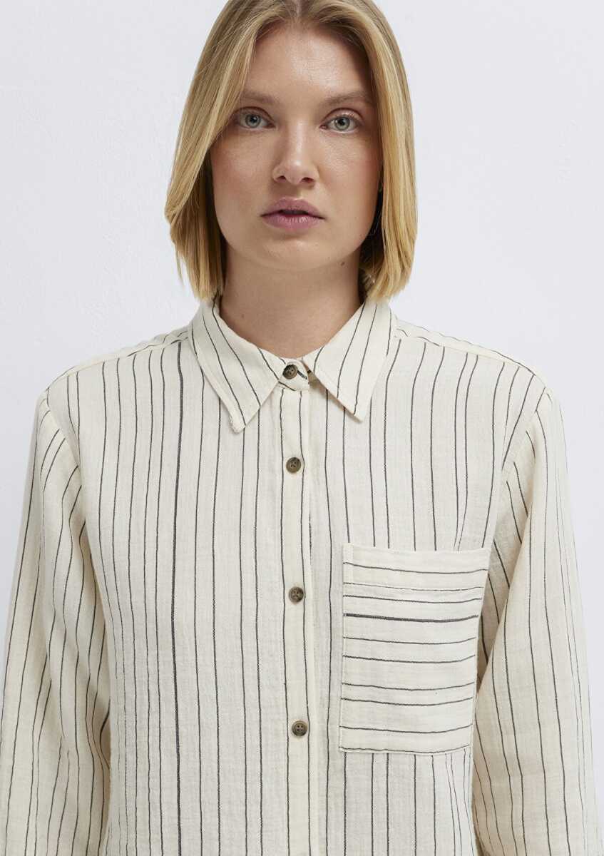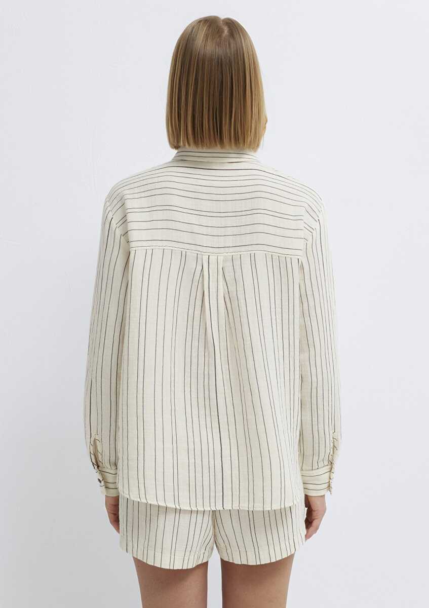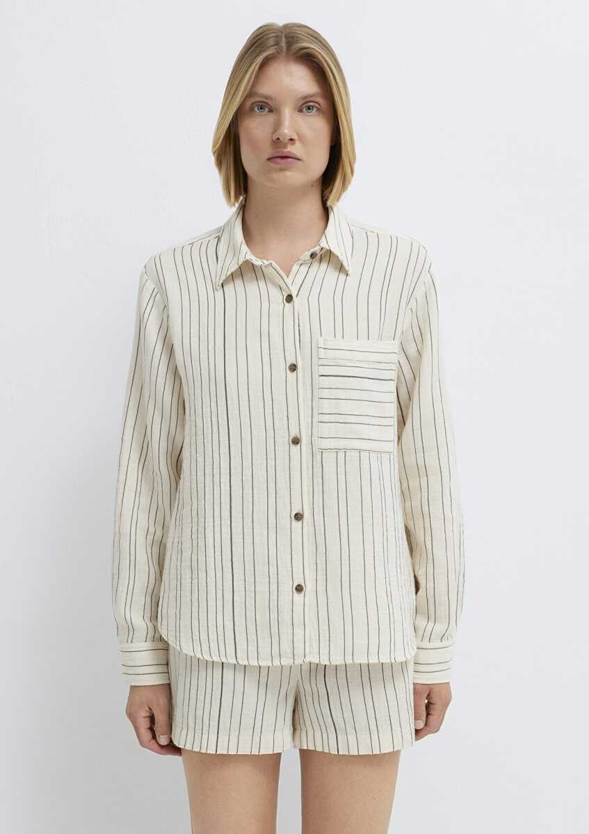 Şimdi KeşfetMavi Çizgili Ekru Loose Fit Kadın Gömlek 1211468-84004