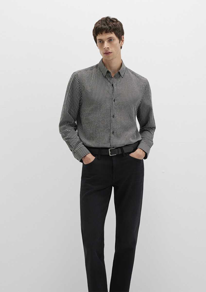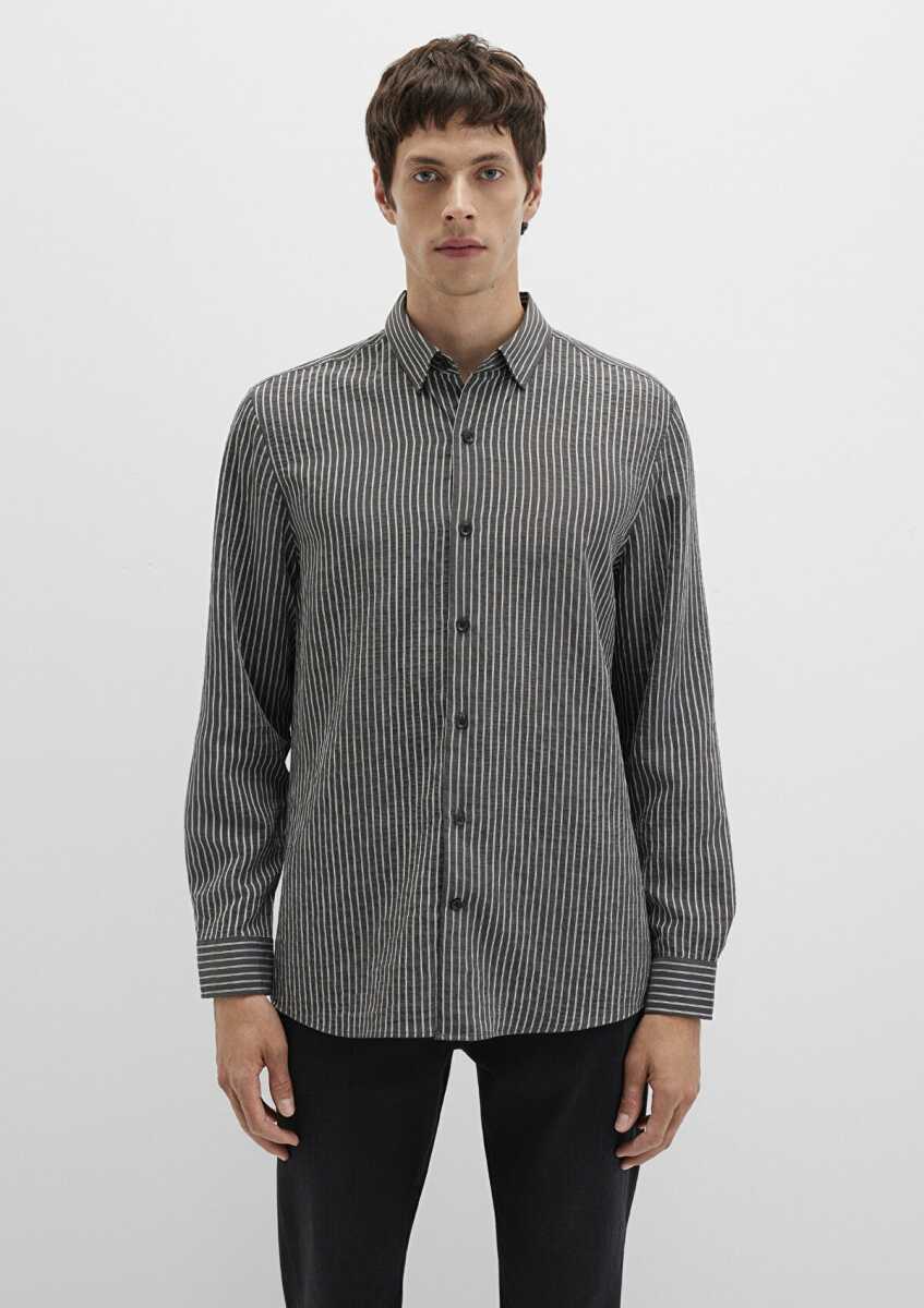 Mavi Mavi Çizgili Gri Erkek Gömlek 0211756-91269