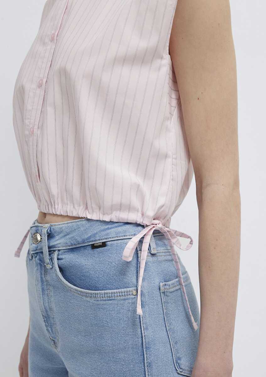 Mavi Çizgili Pembe Kadın Bluz 1211472-91599
