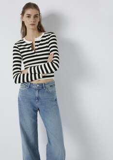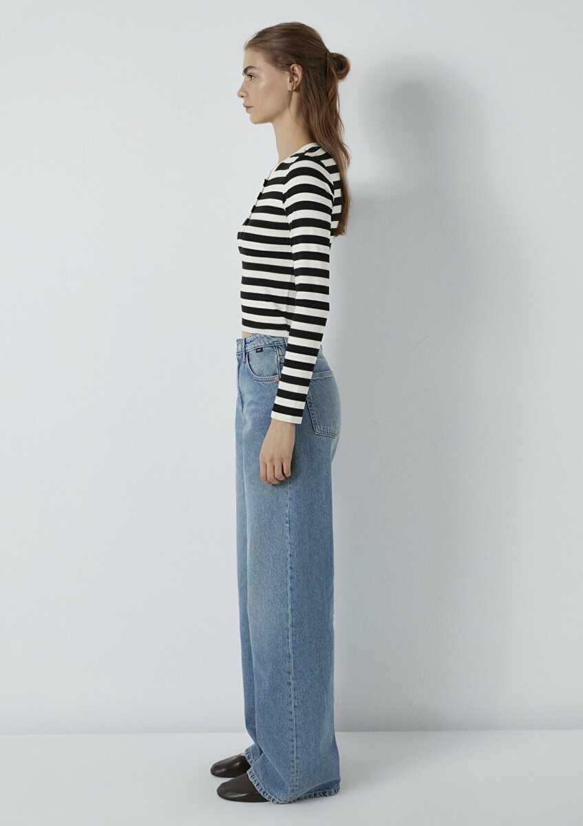 Mavi Çizgili Siyah Kadın Sweat 1613767-85407
