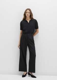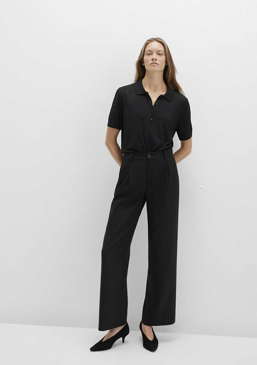 Mavi Çizgili Siyah Kumaş Kadın Pantolon 1011090-900