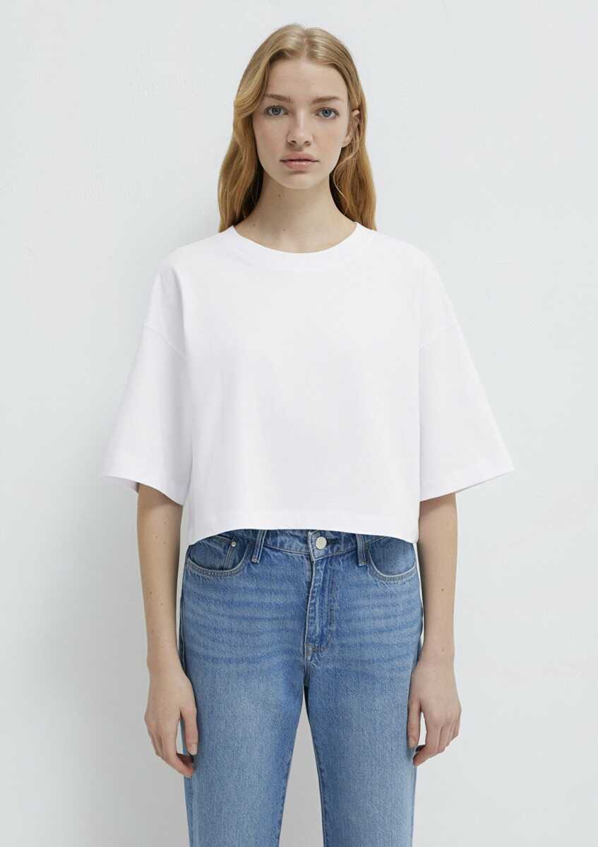 Mavi Crop Beyaz Kadın Tişört 1612377-620