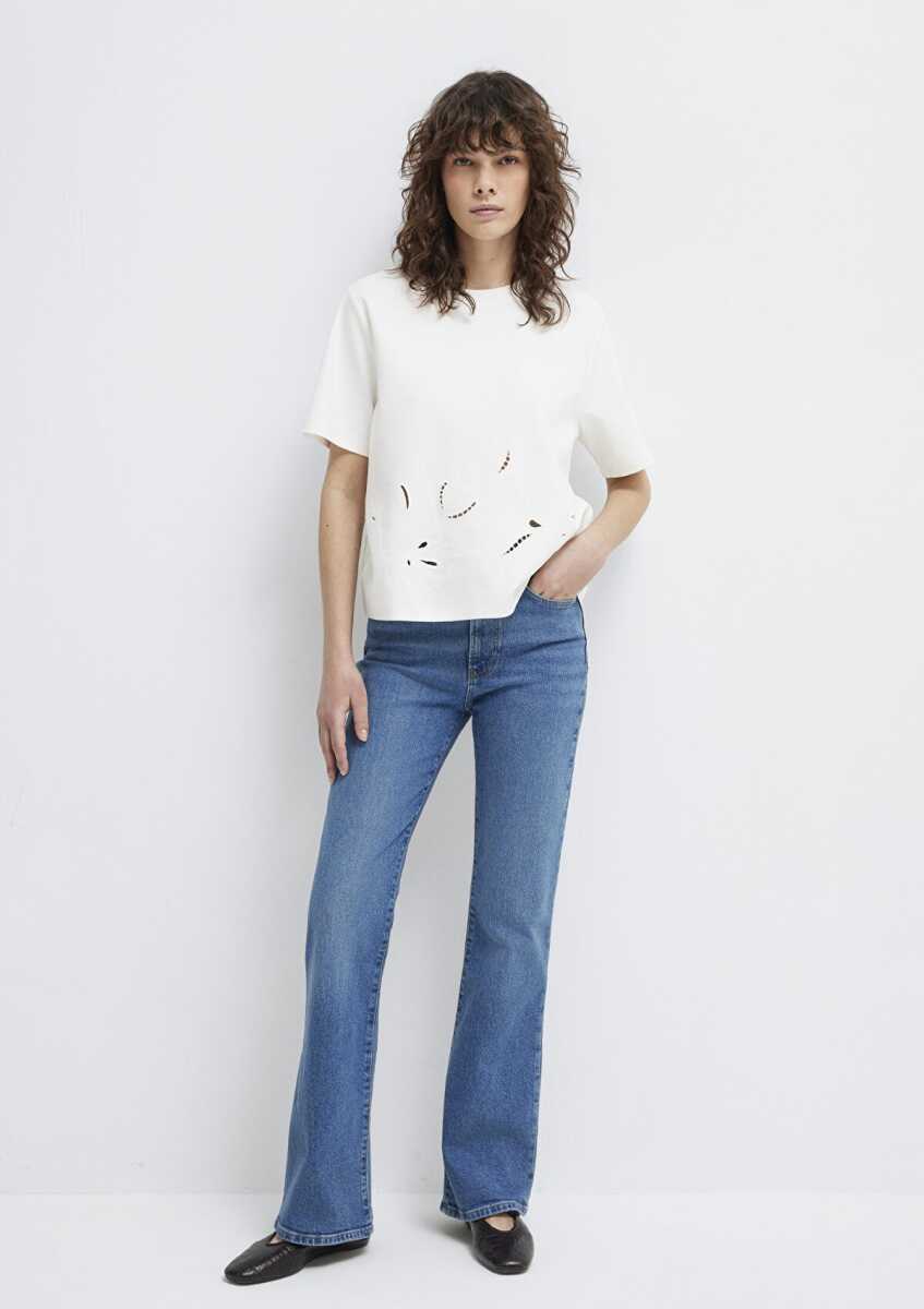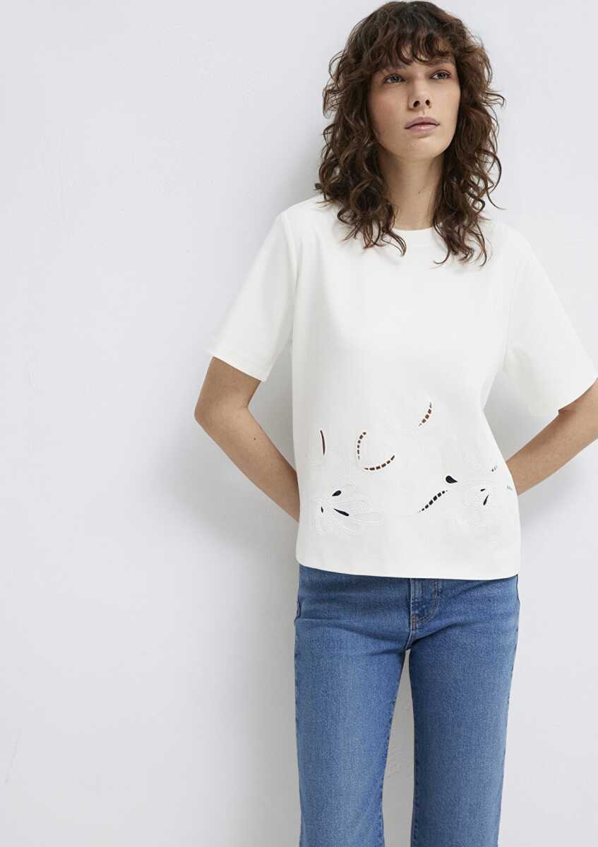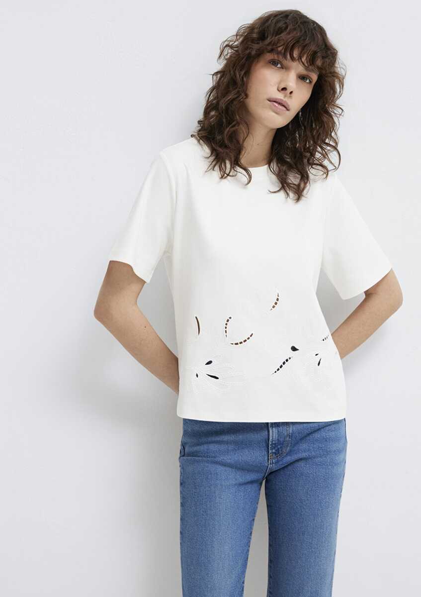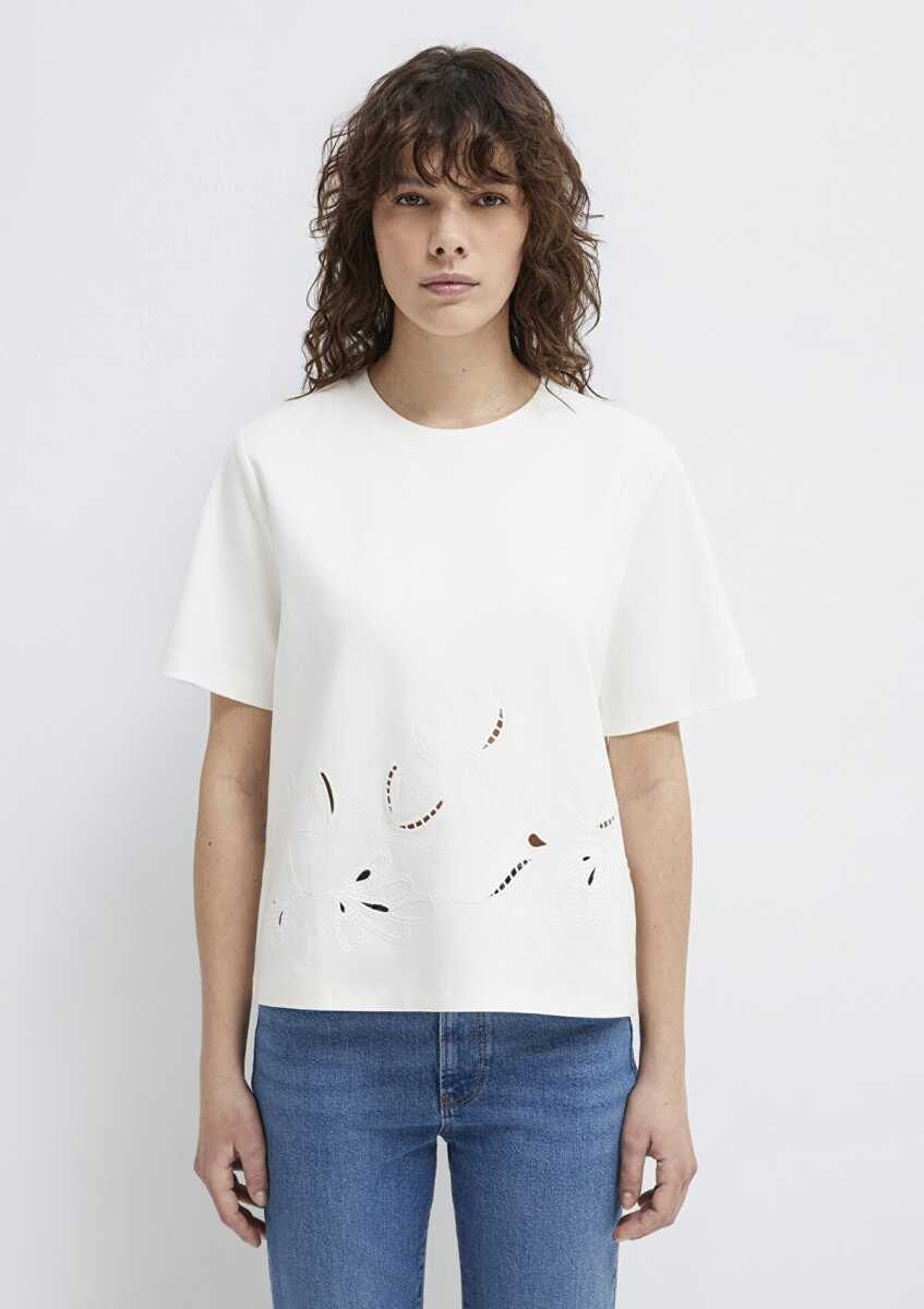 Mavi Dantel Detaylı Ekru Kadın Tişört 1613759-70057