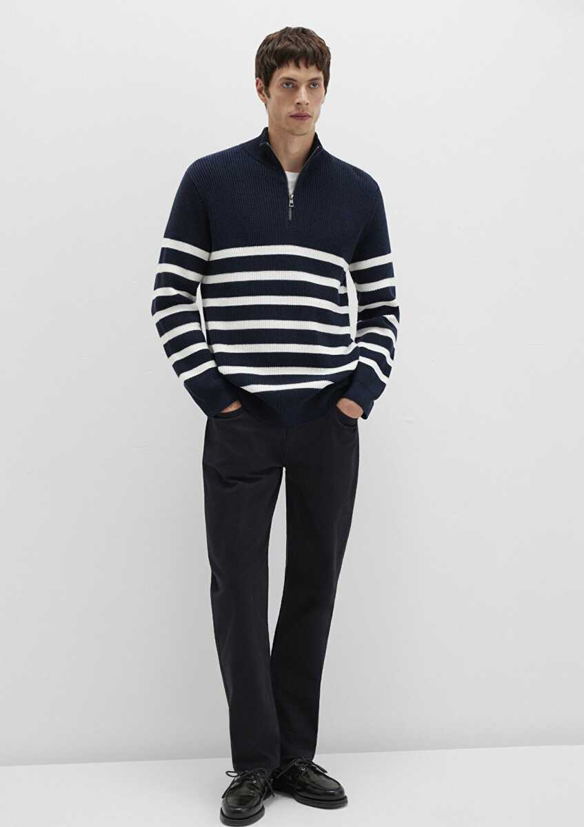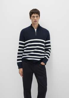 Mavi Dermuarlı Çizgili Lacivert Erkek Kazak 0710131-70490