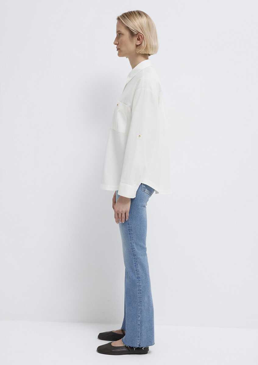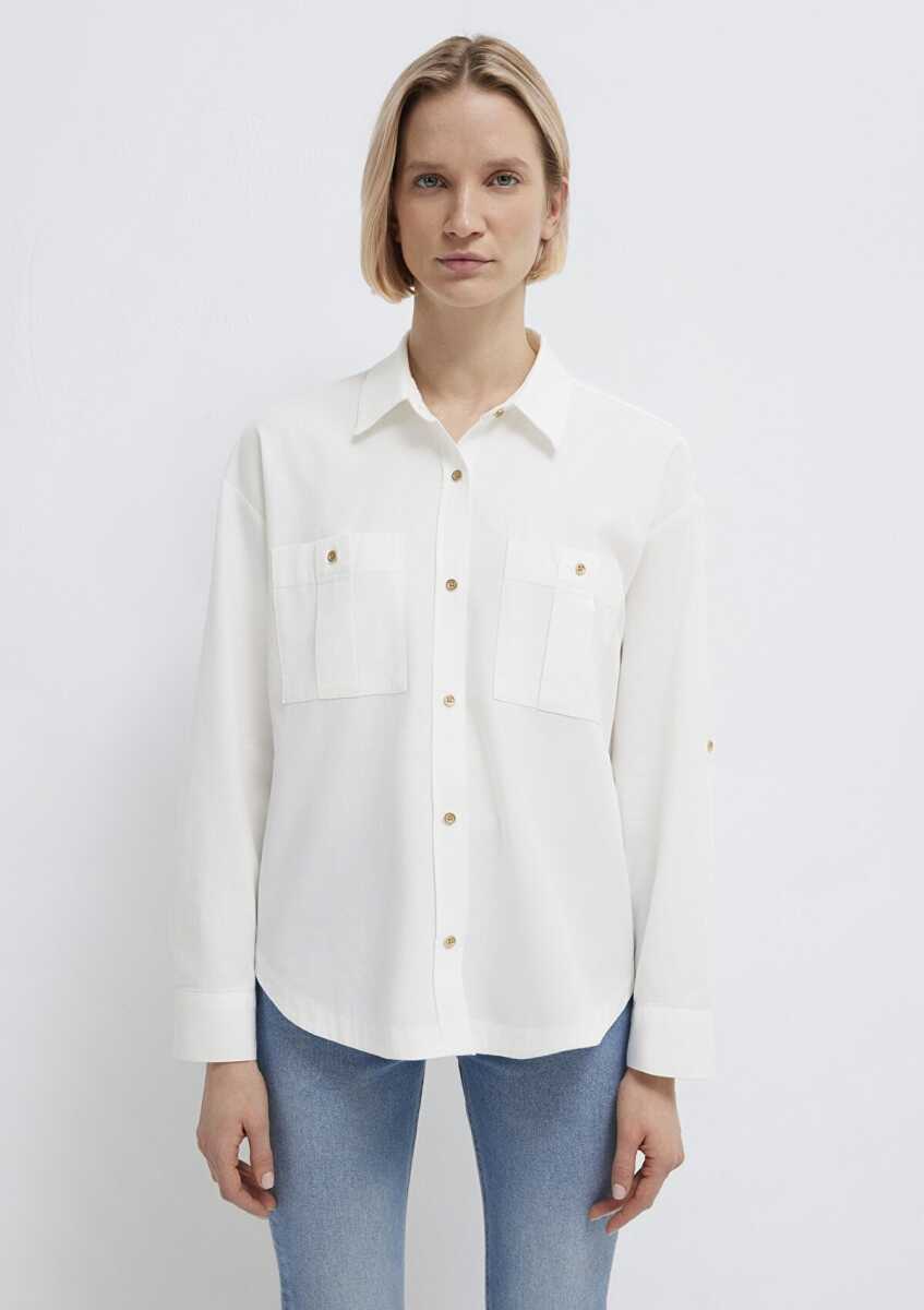 Mavi Düğme Detaylı Ekru Loose Fit Kadın Gömlek 1211383-70057