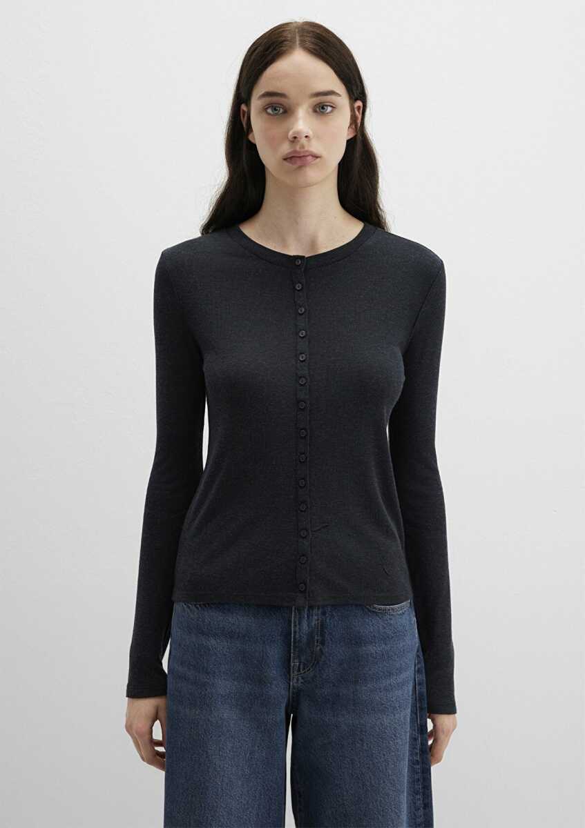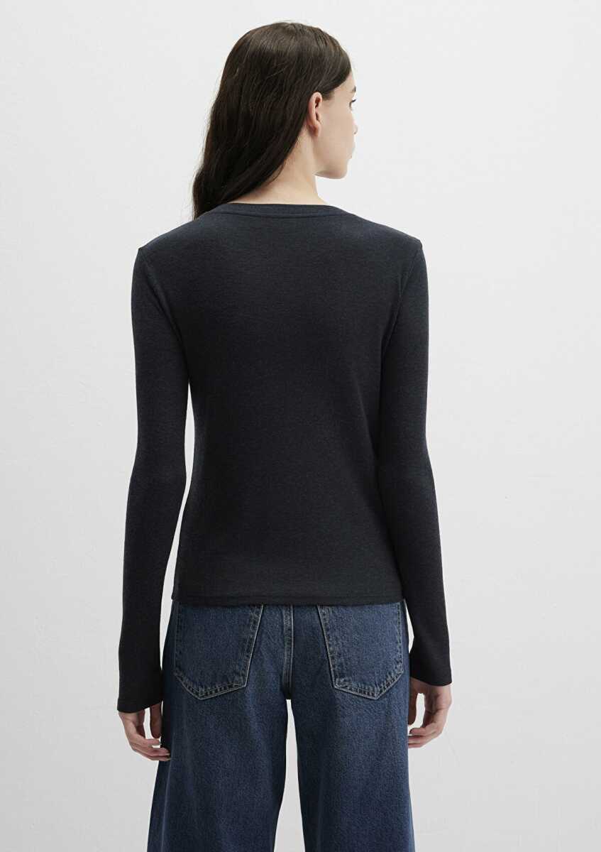 Mavi Düğme Detaylı Siyah Kadın Sweat 1613652-80022