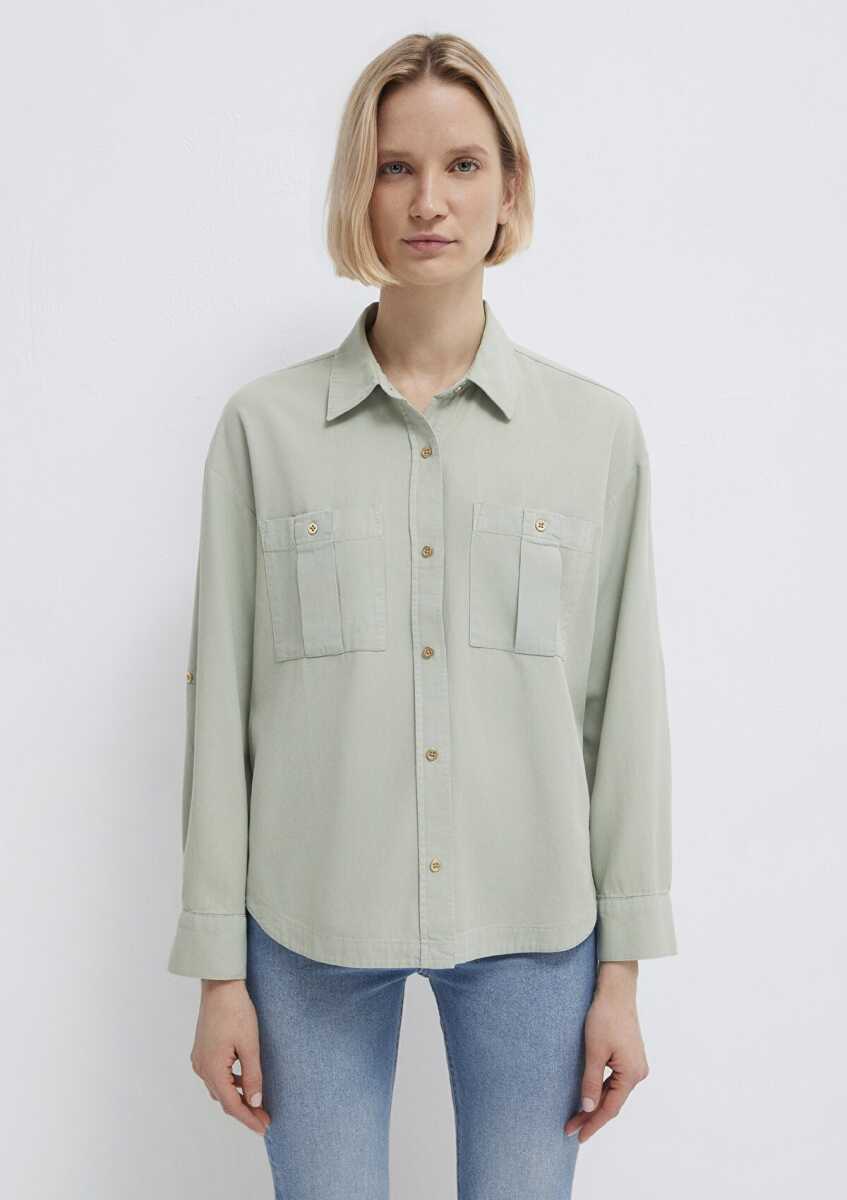 Mavi Düğme Detaylı Yeşil Loose Fit Kadın Gömlek 1211383-70113