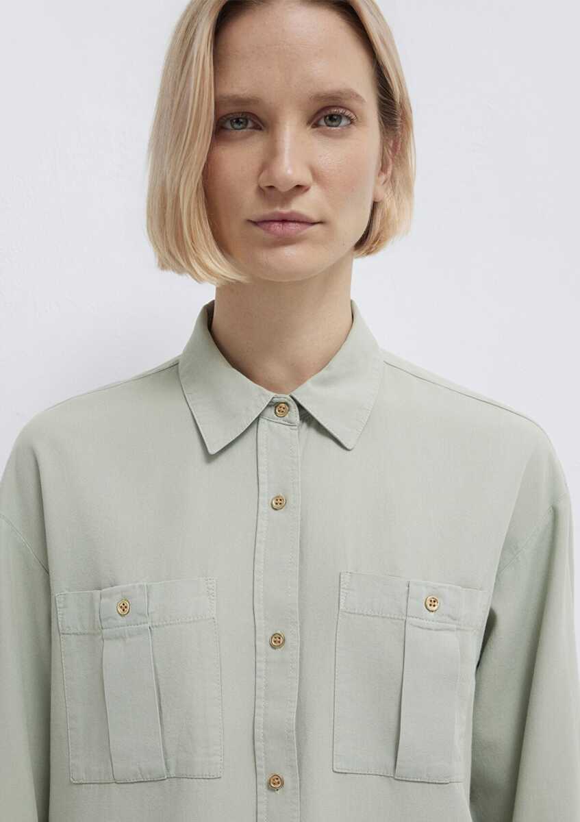 Şimdi KeşfetMavi Düğme Detaylı Yeşil Loose Fit Kadın Gömlek 1211383-70113
