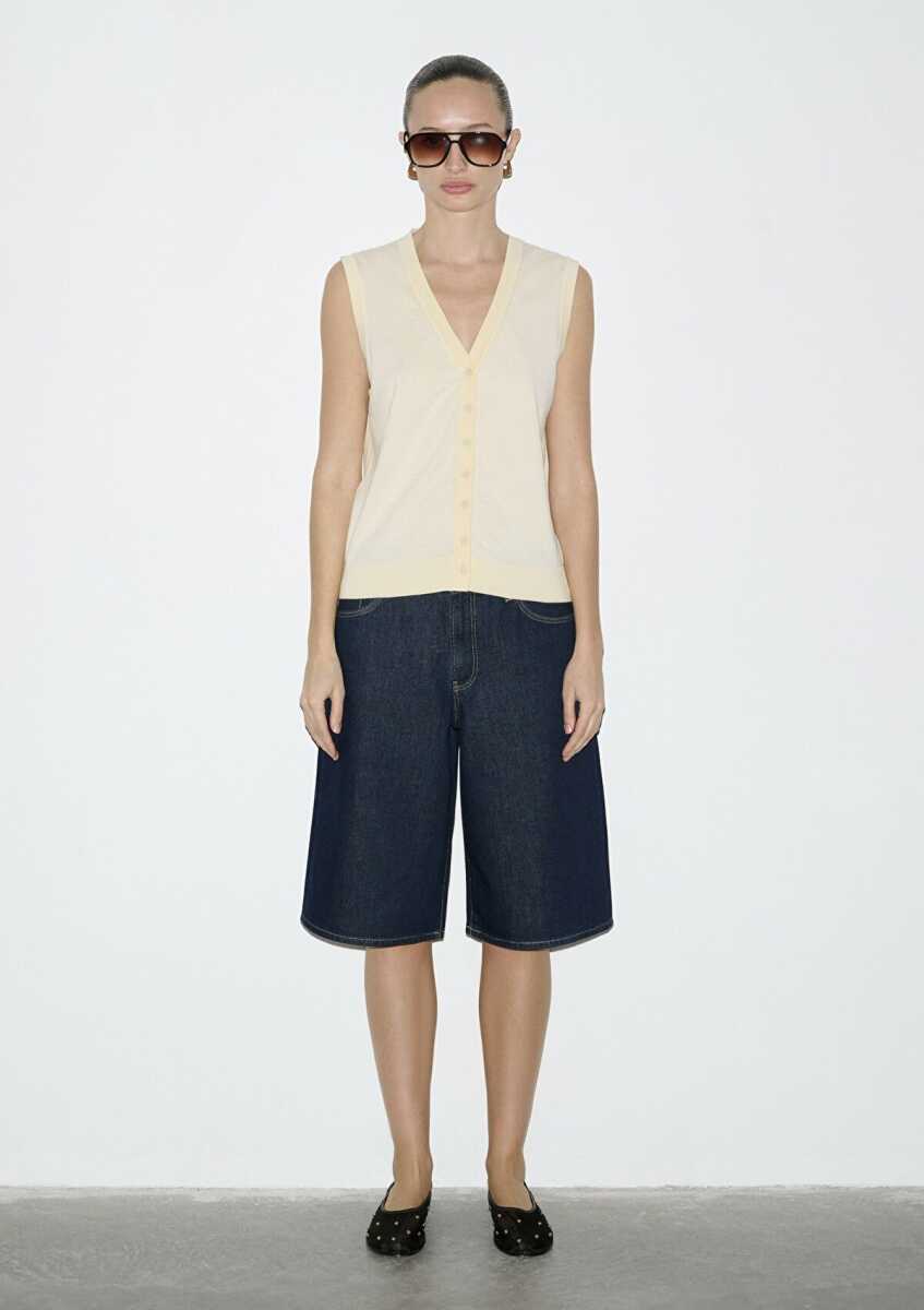 Şimdi KeşfetMavi Düğmeli Sarı Triko Kadın Yelek 1710867-70013