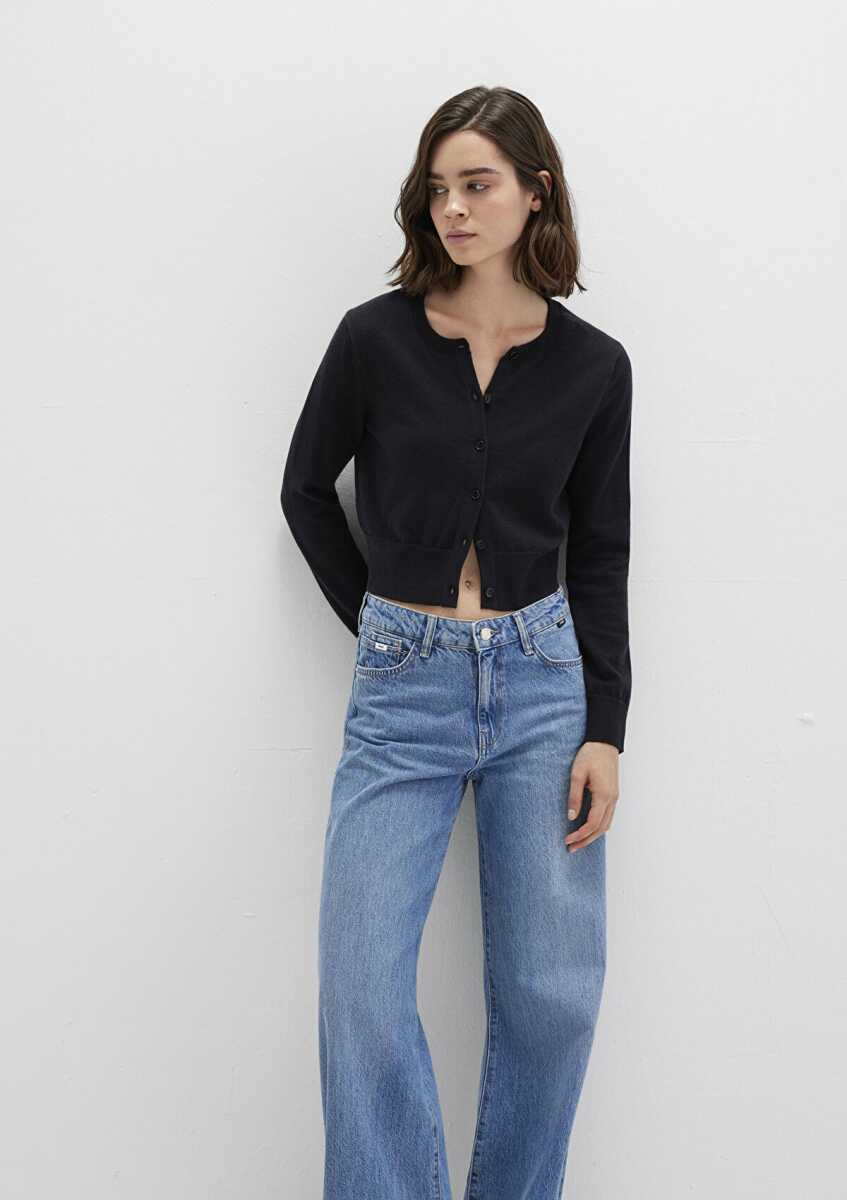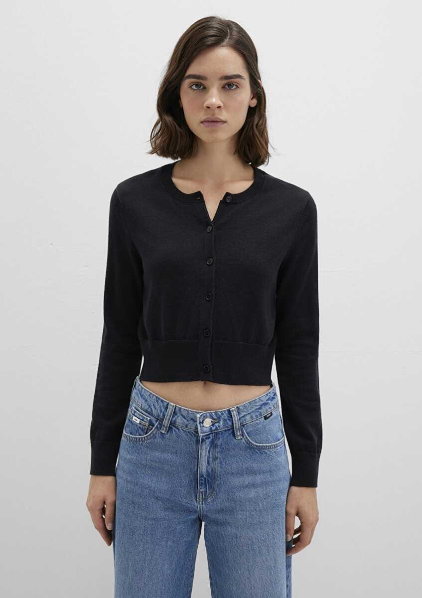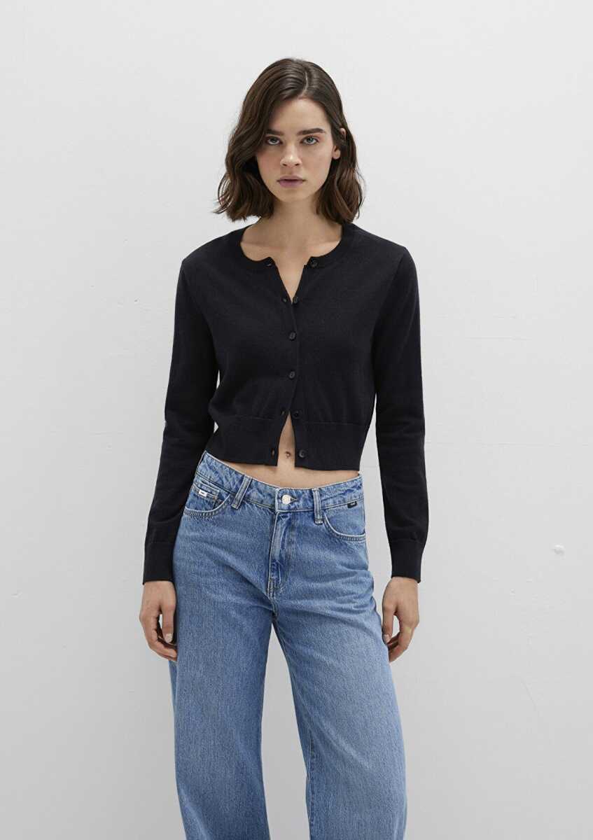 Mavi Düğmeli Siyah Kadın Hırka 1710722-900