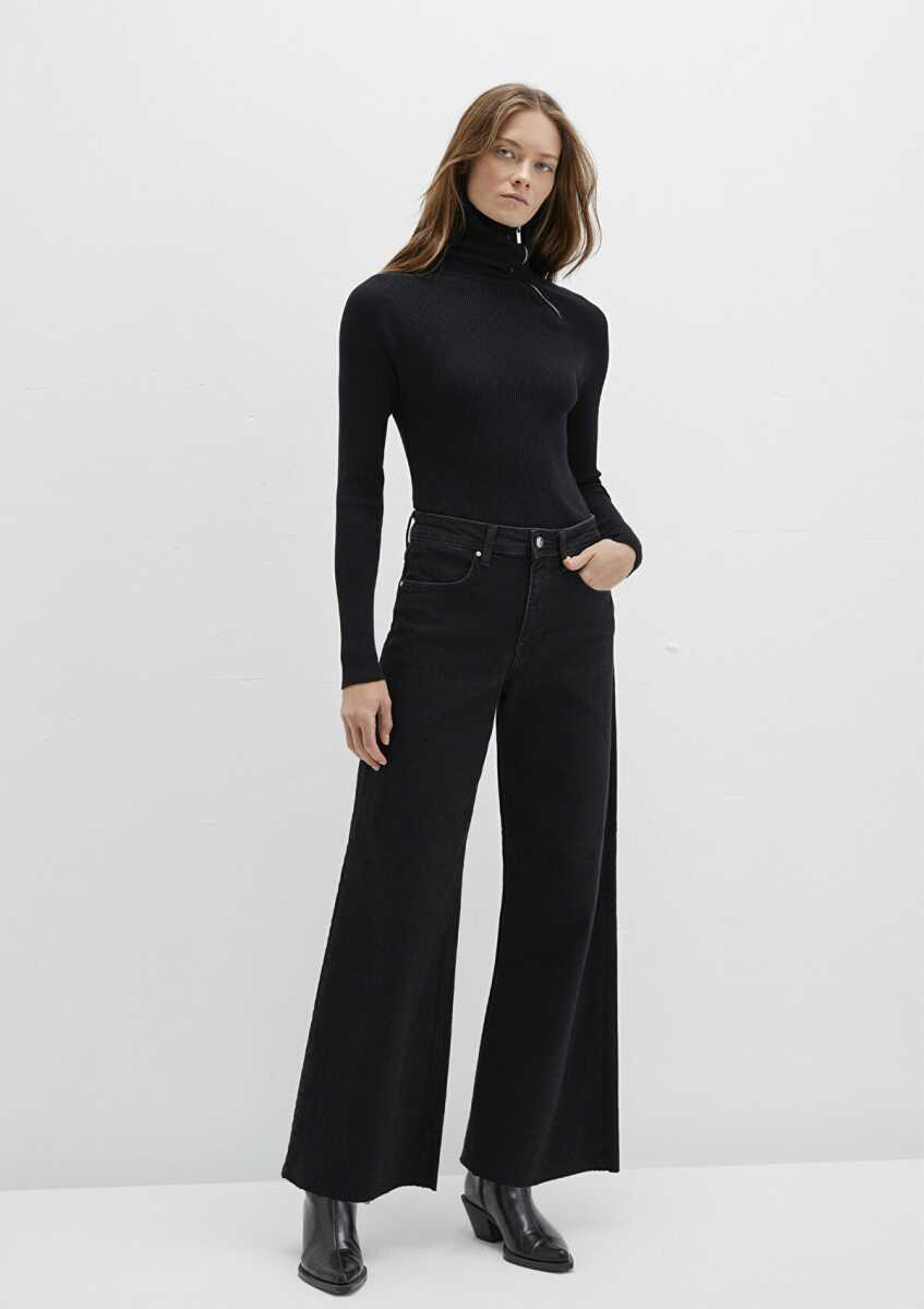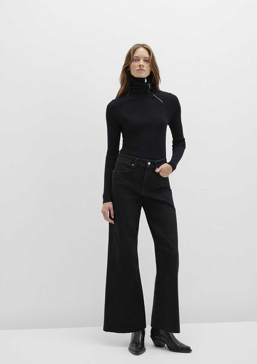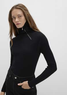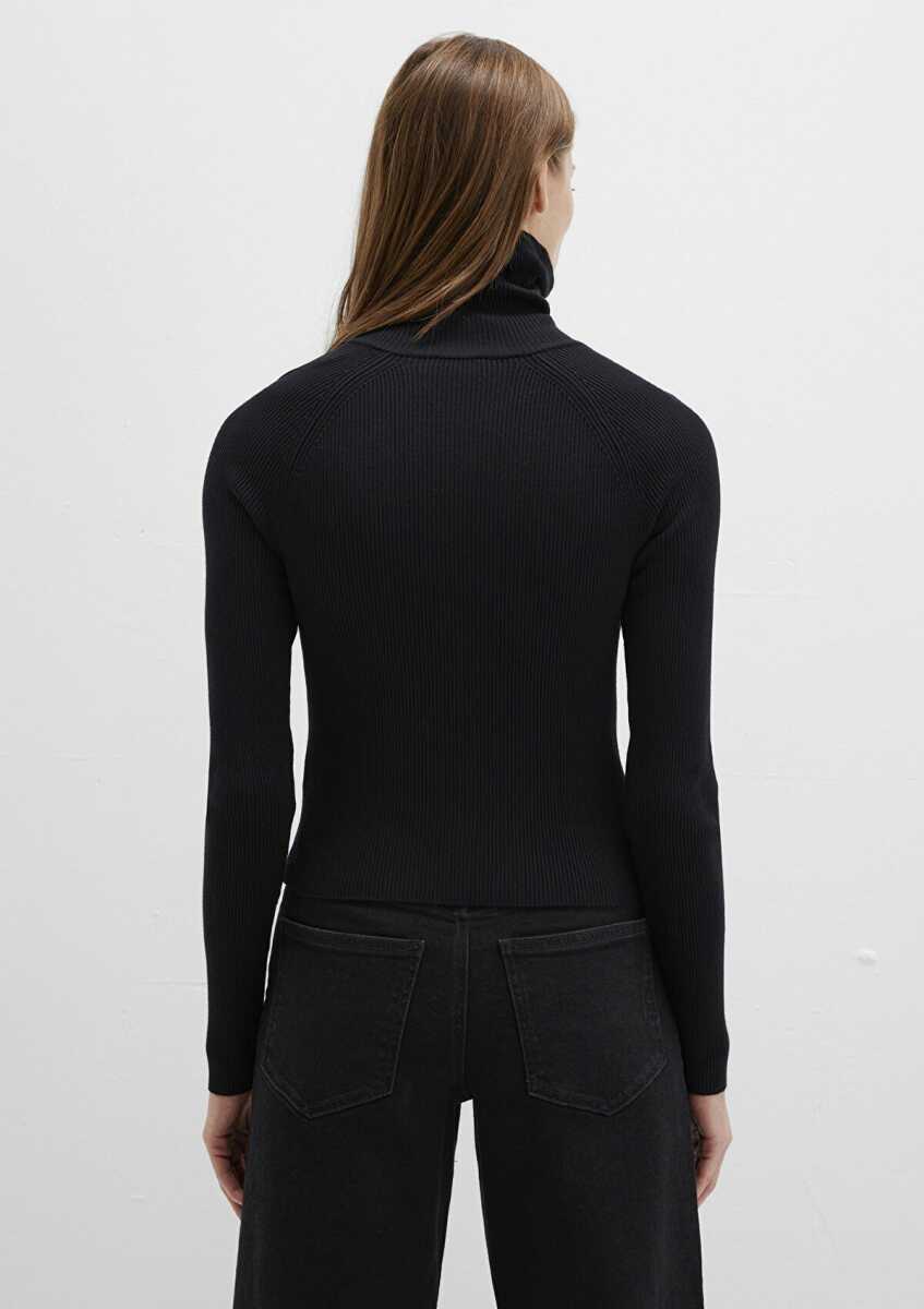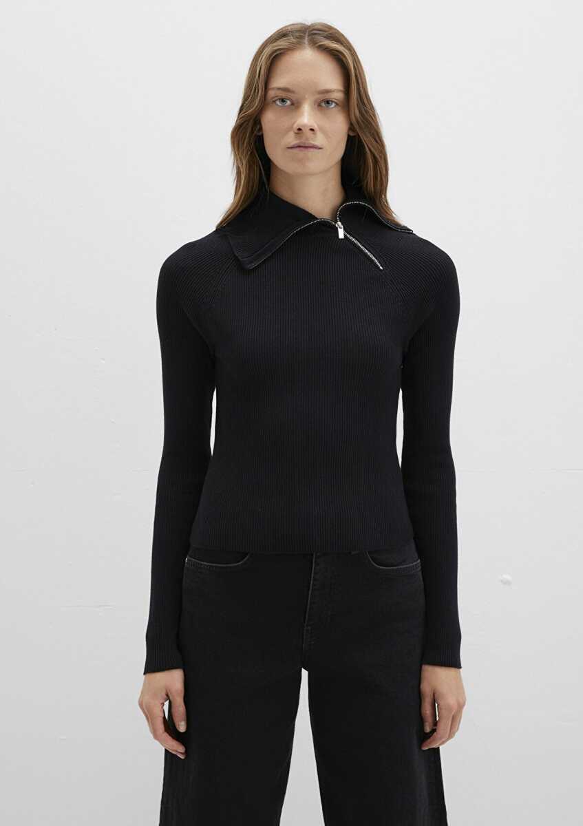 Mavi Fermuar Detaylı Dik Yaka Siyah Kadın Kazak 1710790-900