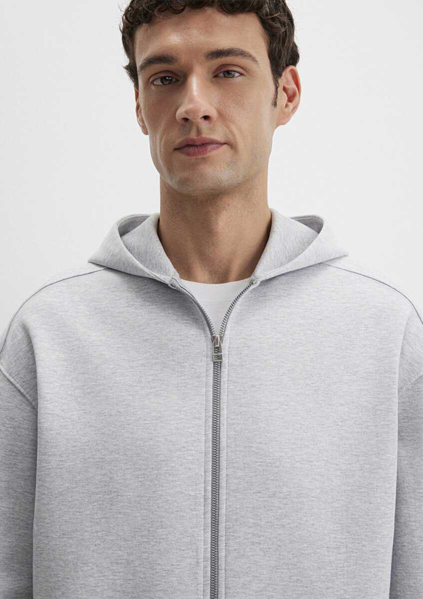 Mavi Fermuarlı Kapüşonlu Gri Erkek Sweat 0S10312-80018