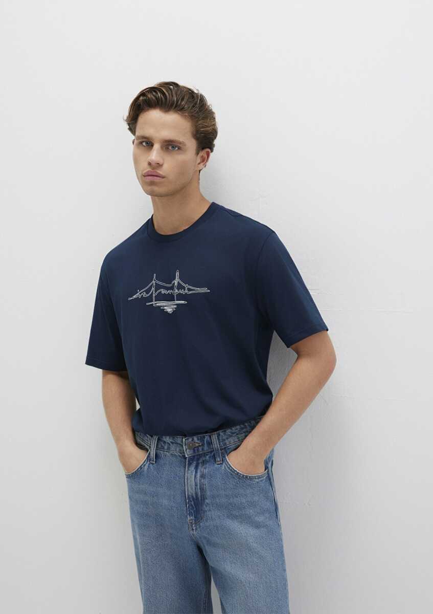 Mavi İstanbul Baskılı Erkek Tişört 0611881-70490