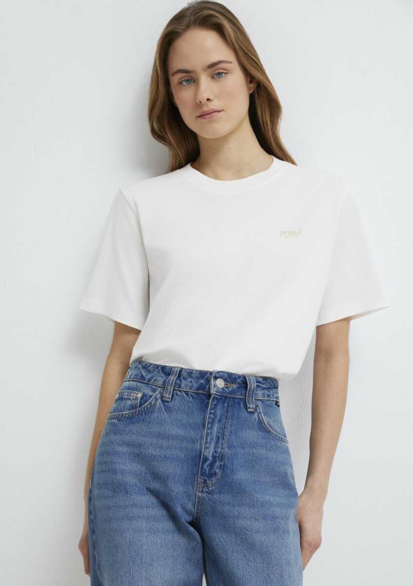 Mavi Jeans Baskılı Ekru Regular Kadın Tişört 1613804-80194