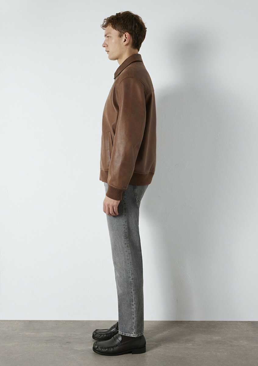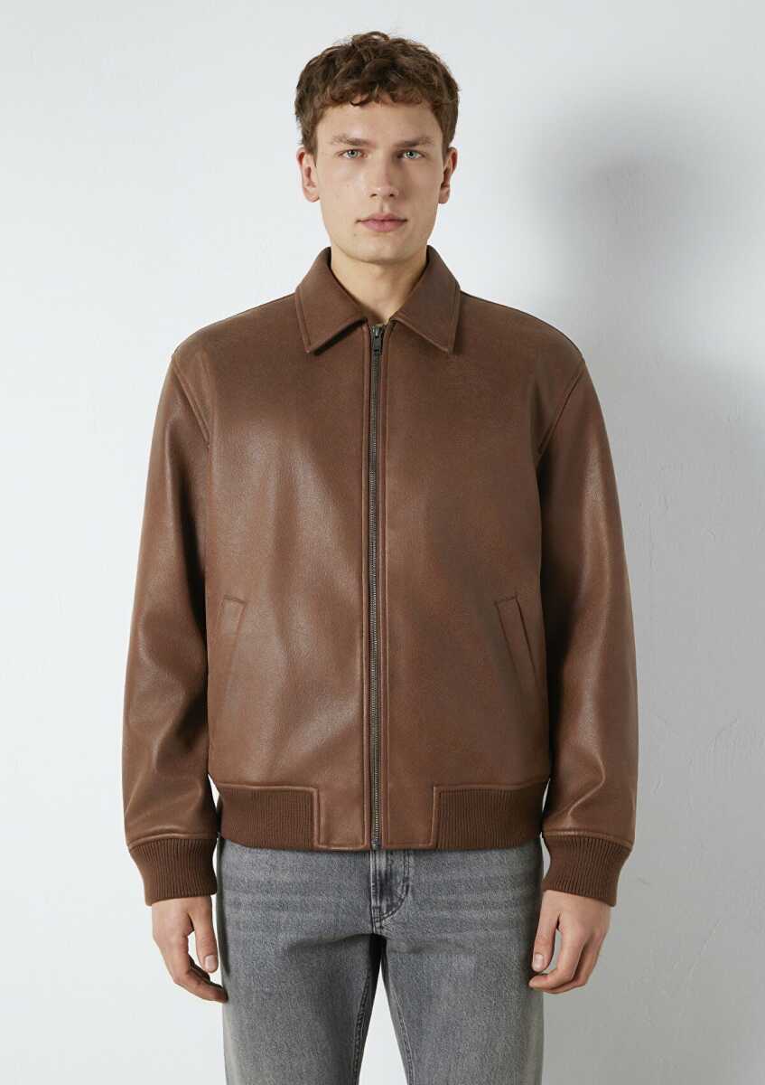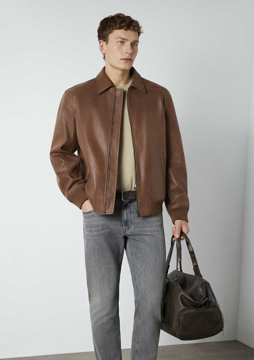 Mavi Kahverengi Biker Suni Deri Loose Fit Erkek Ceket 0110775-70242