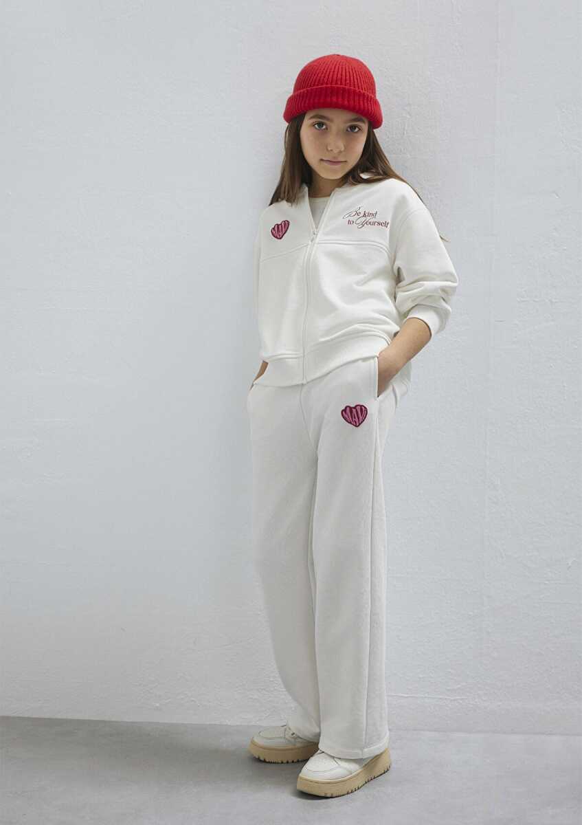 Şimdi KeşfetMavi Kalp Baskılı Ekru Loose Fit Bomber Çocuk Sweat 7S10174-70057