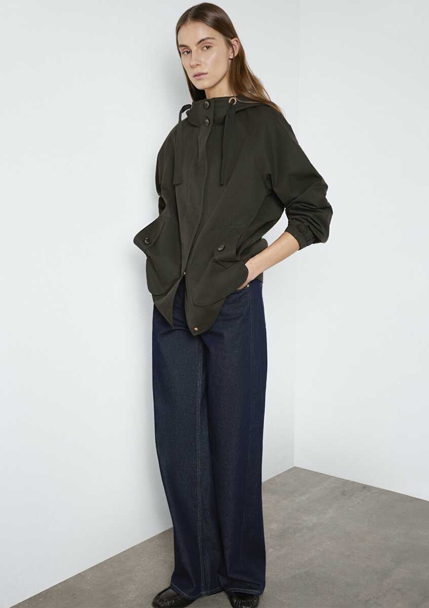 Şimdi KeşfetMavi Kapüşonlu Haki Loose Fit Kadın Ceket 1110014-90707