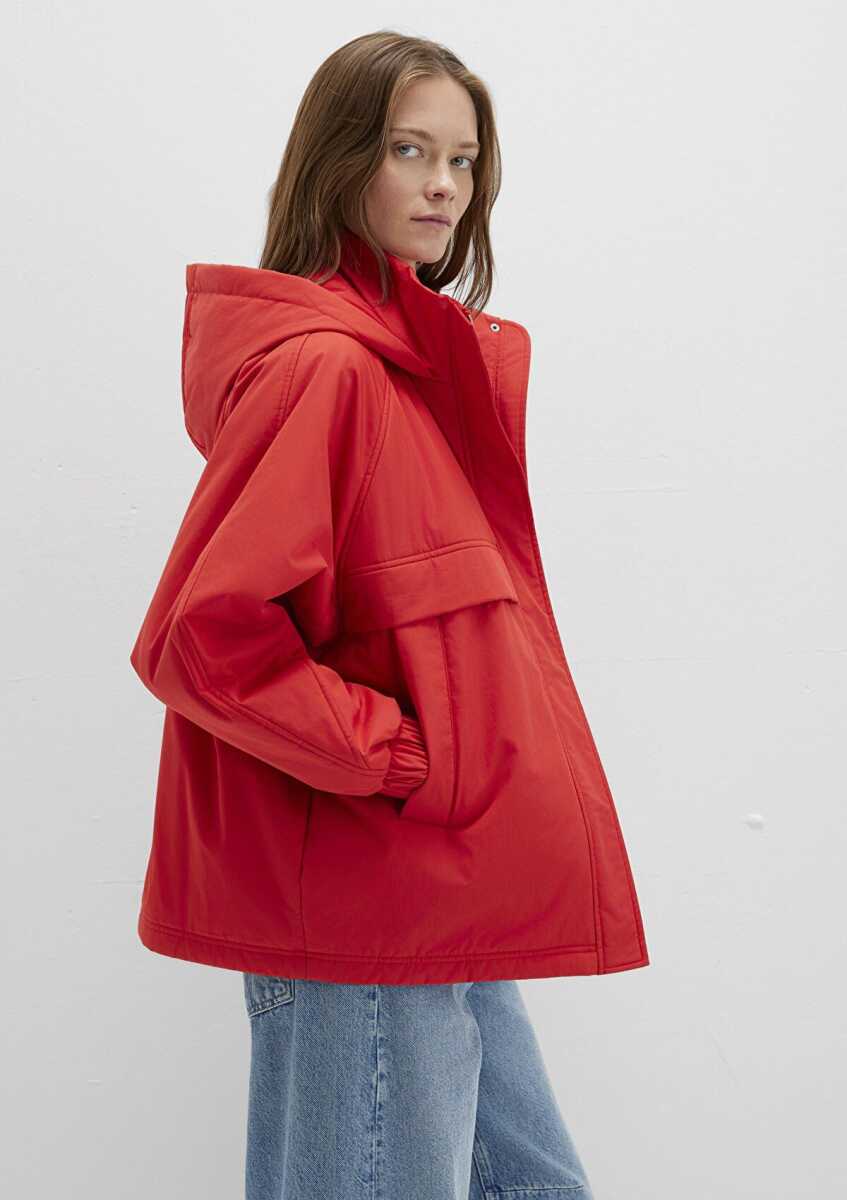 Mavi Kapüşonlu Kırmızı Oversize Kadın Ceket 1110348-70461