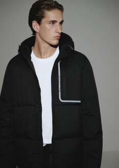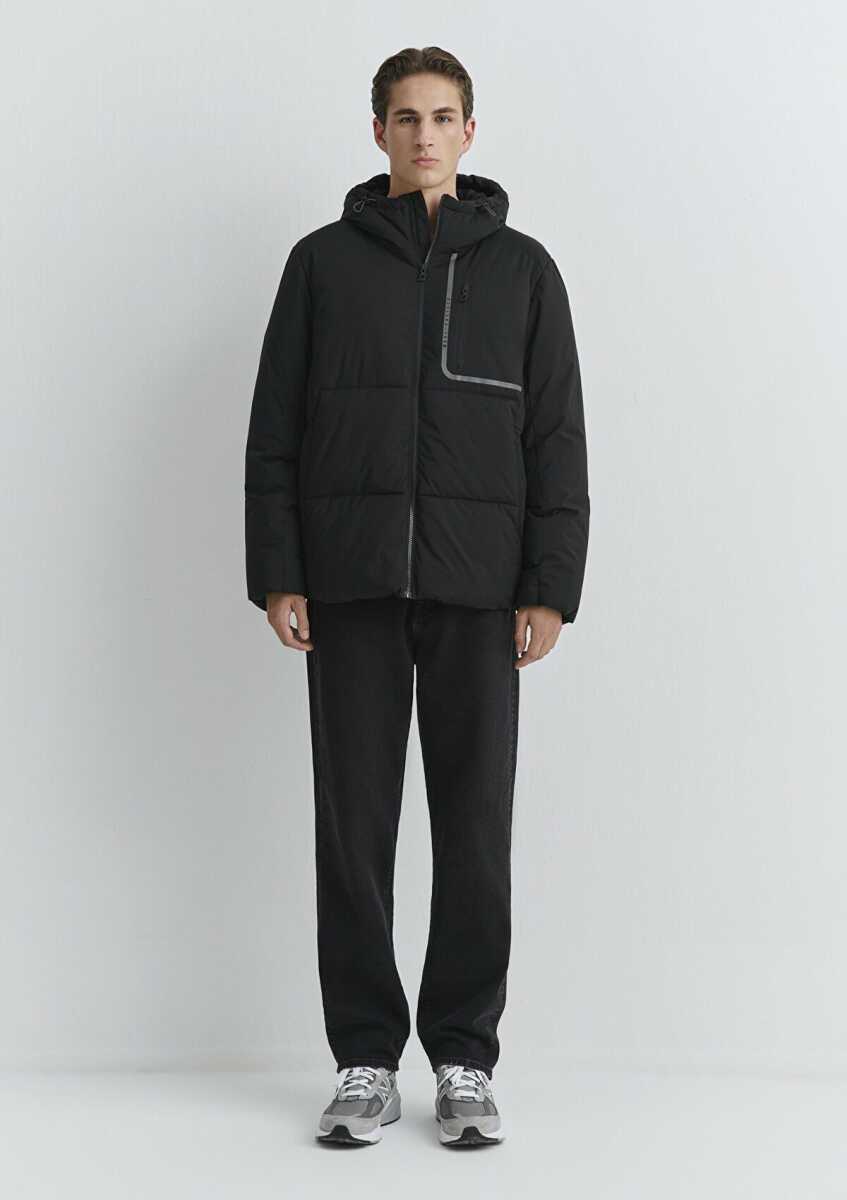 Mavi Kapüşonlu Siyah Erkek Ceket 0110463-900
