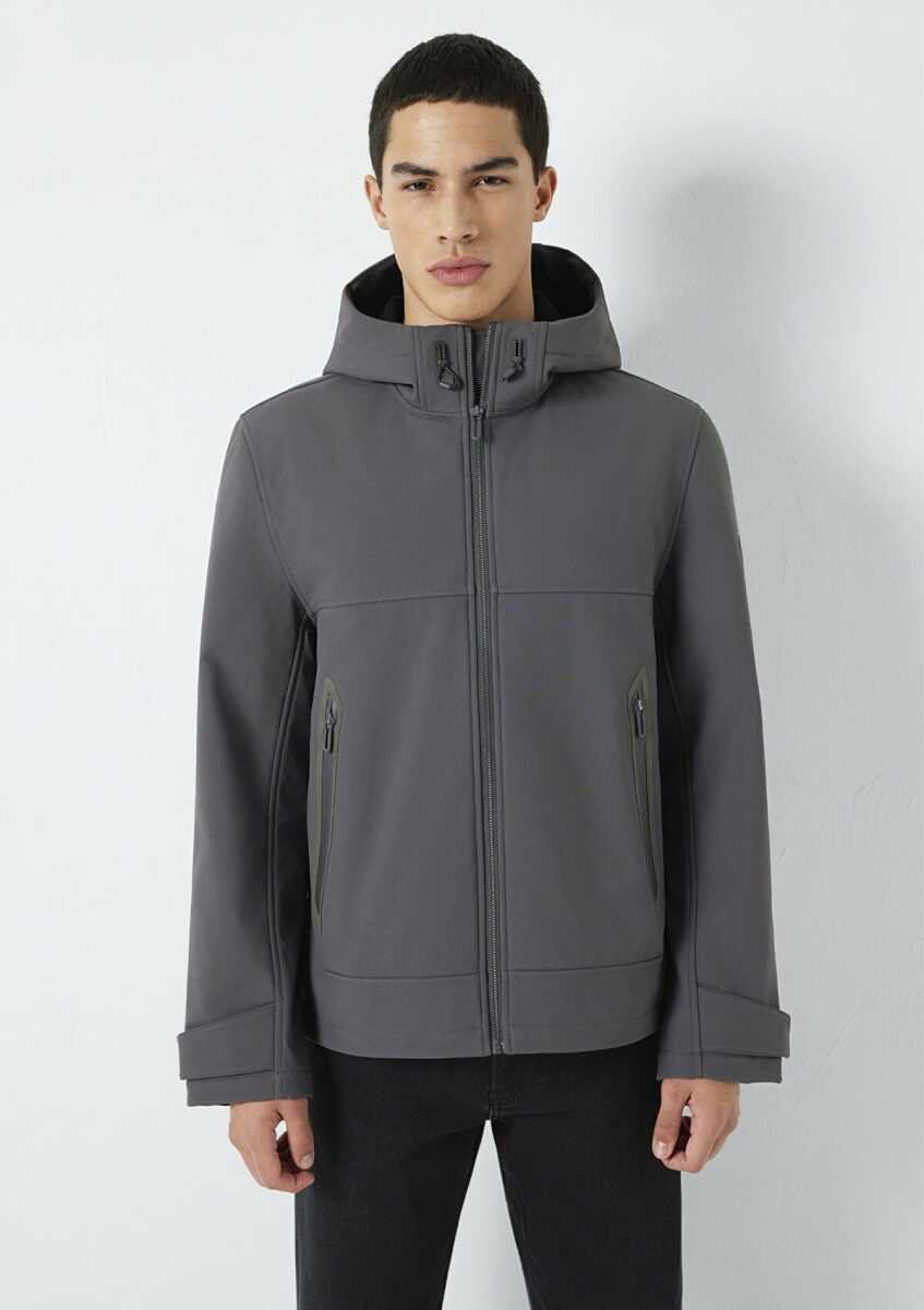 Mavi Kapüşonlu Su İtici Gri Scuba Ceket 0110762-85540