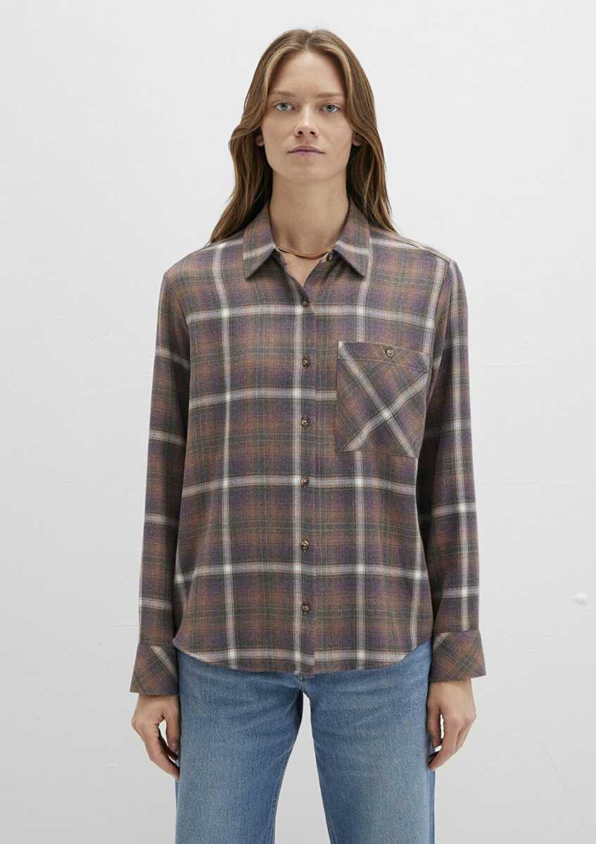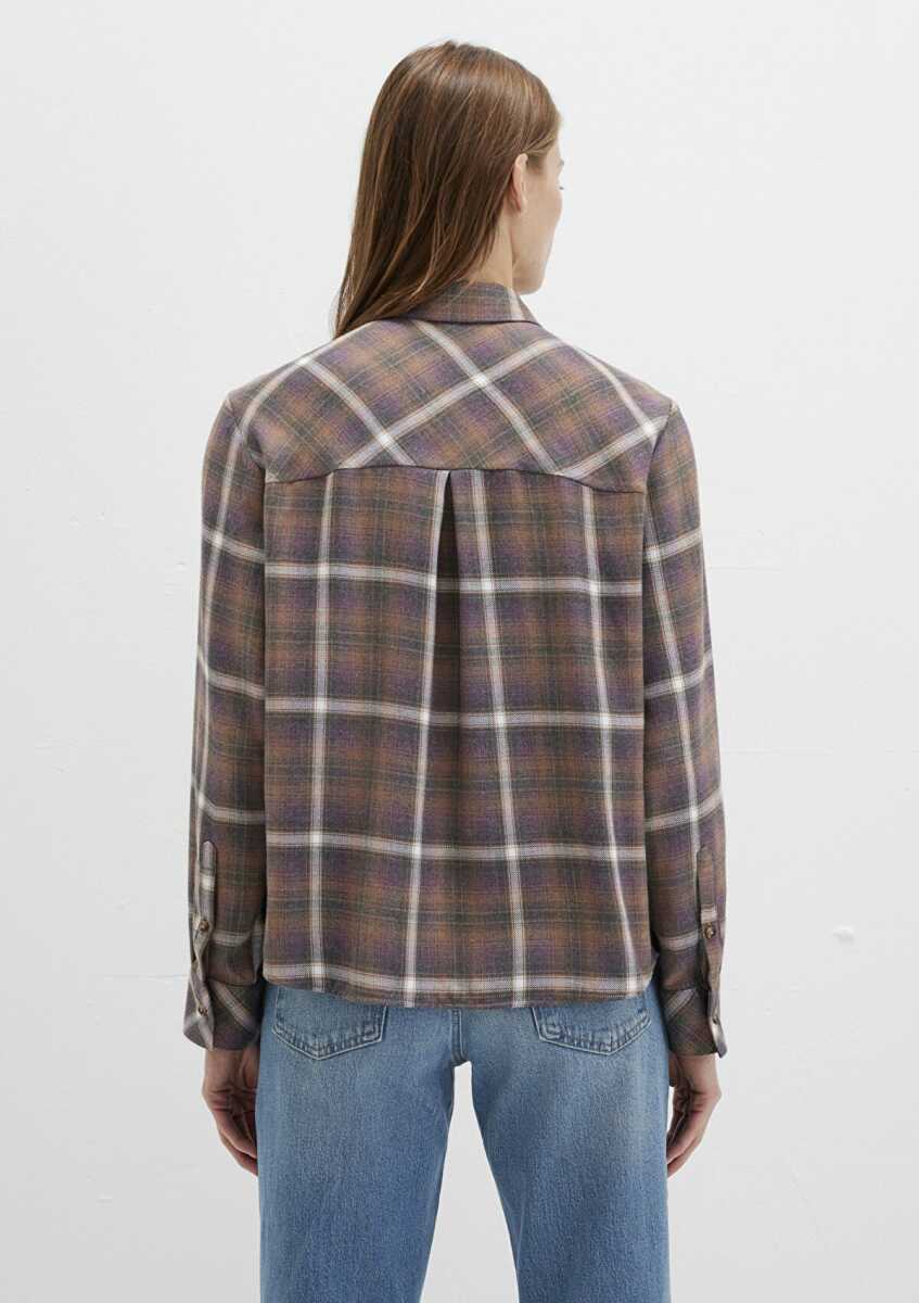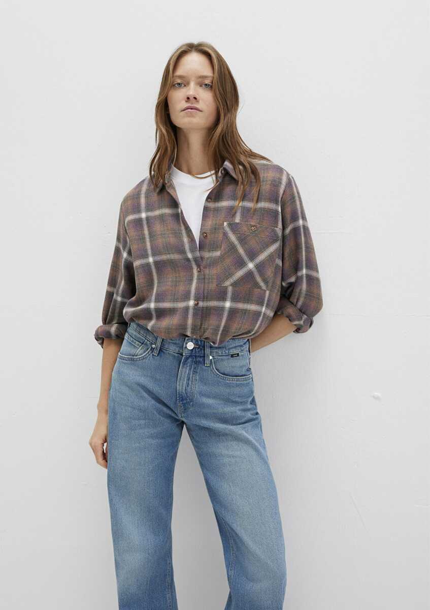 Mavi Kareli Kahverengi Loose Fit Kadın Gömlek 1211284-83169