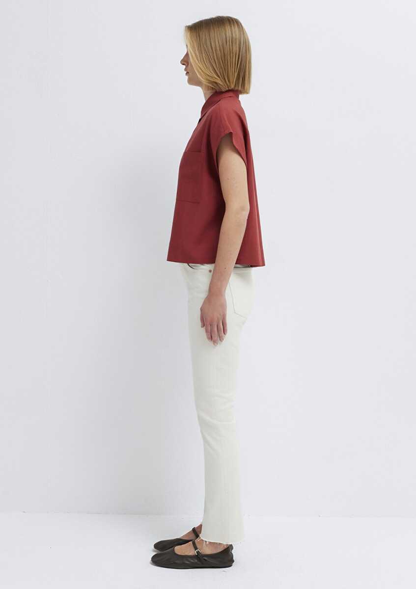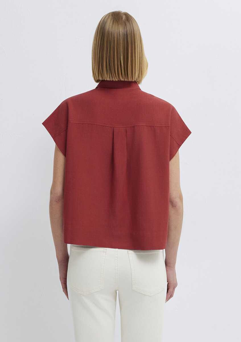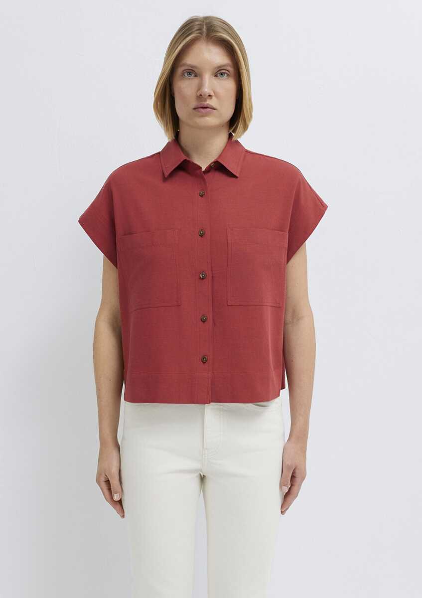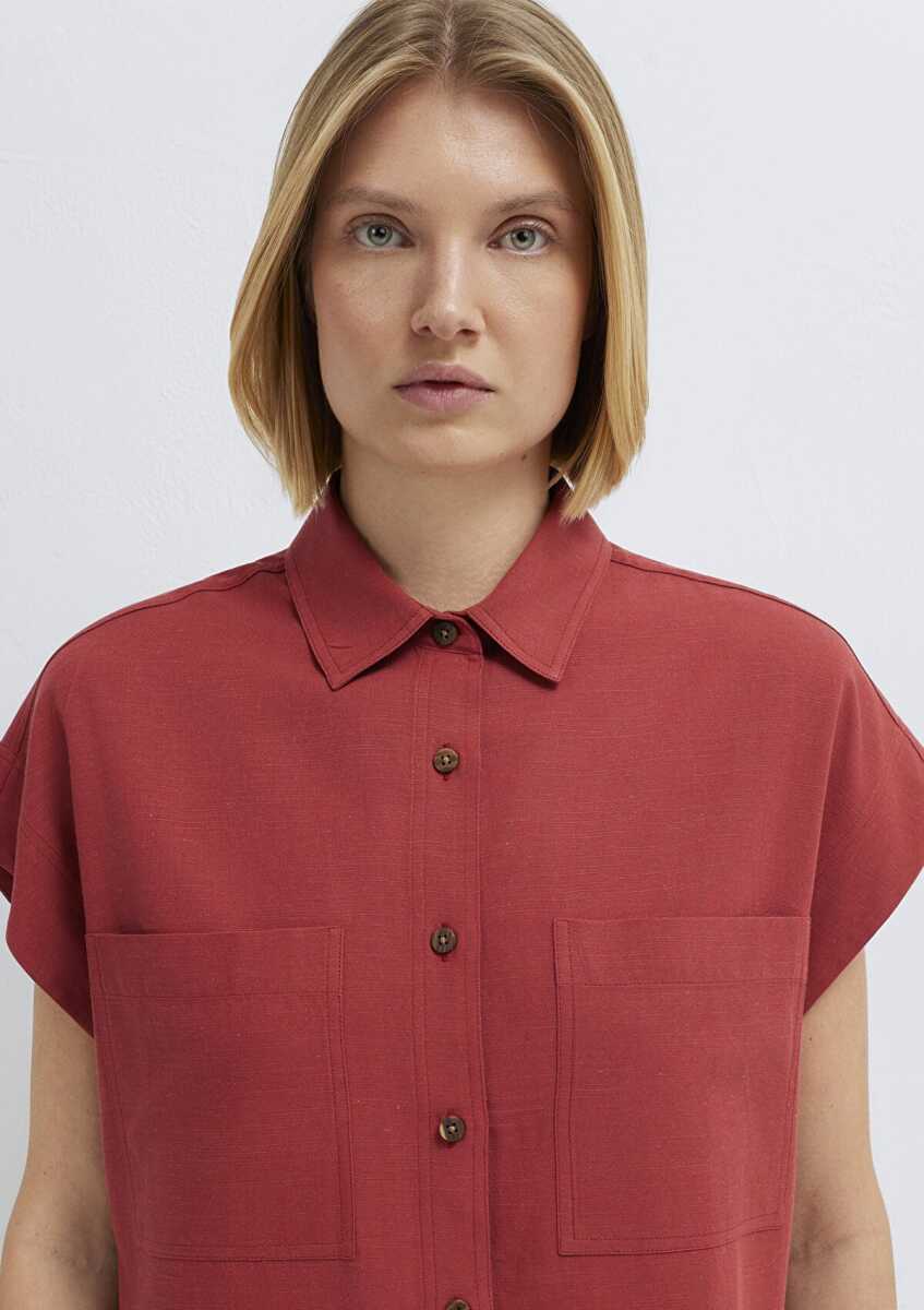 Şimdi KeşfetMavi Keten Karışımlı Cep Detaylı Kırmızı Loose Fit Kadın Gömlek 1211090-91507