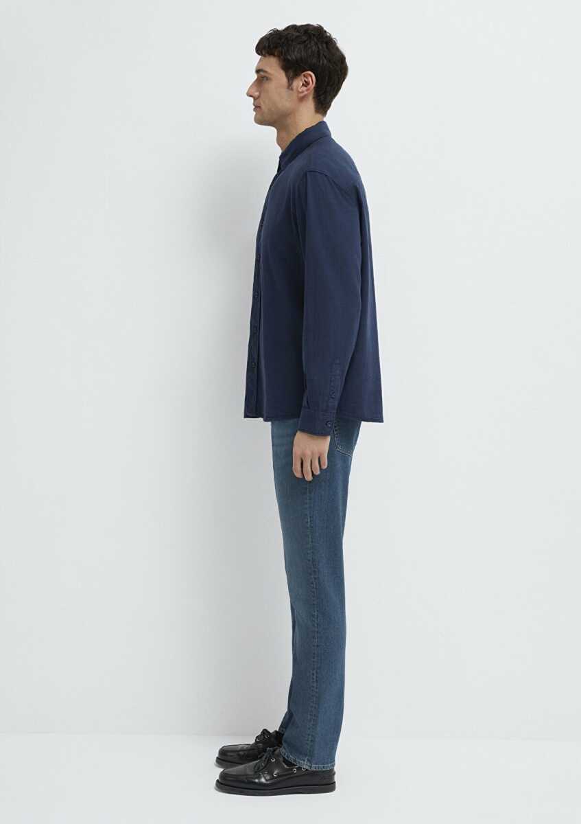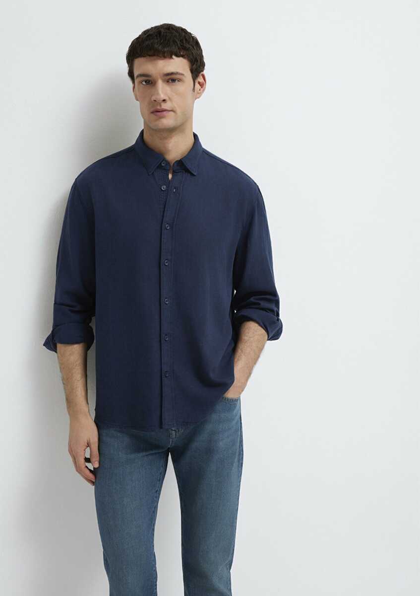Şimdi KeşfetMavi Keten Karışımlı Lacivert Tencel TM Liyosel Regular Fit Erkek Gömlek 0211482-70490