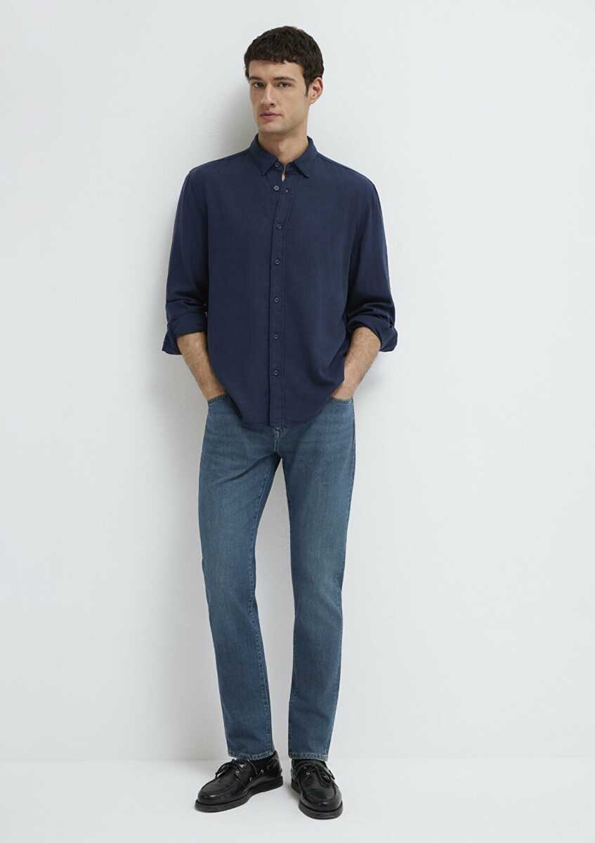 Mavi Keten Karışımlı Lacivert Tencel TM Liyosel Regular Fit Erkek Gömlek 0211482-70490